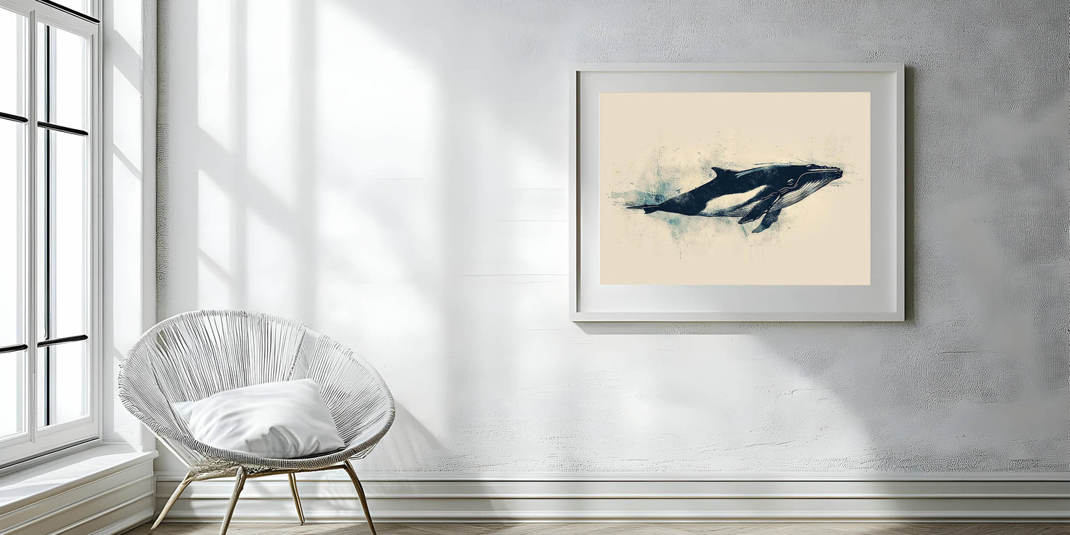 Minimalist Orca Wall Art - Elegant Ocean Life Canvas & Print Decor