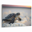 Serene Baby Turtle Wall Art - Sunset Beach Canvas for Coastal Decor
