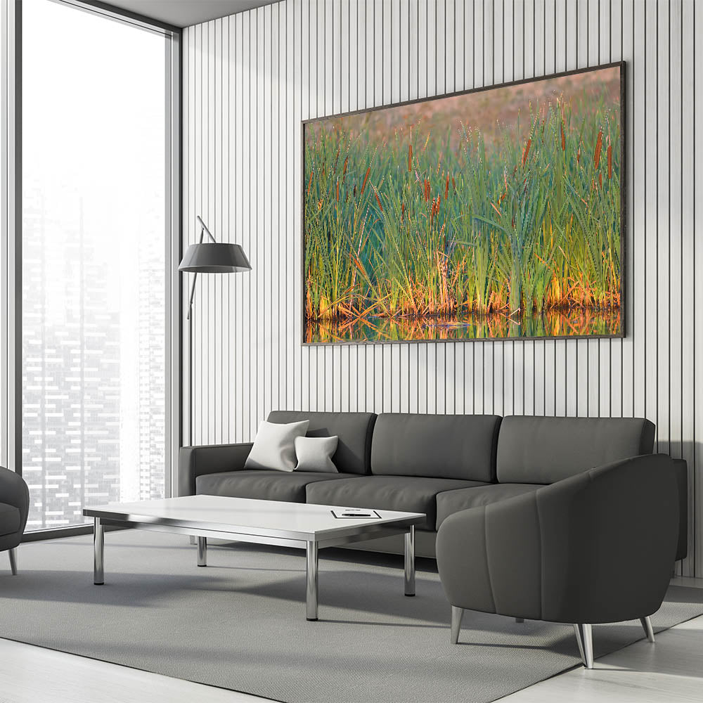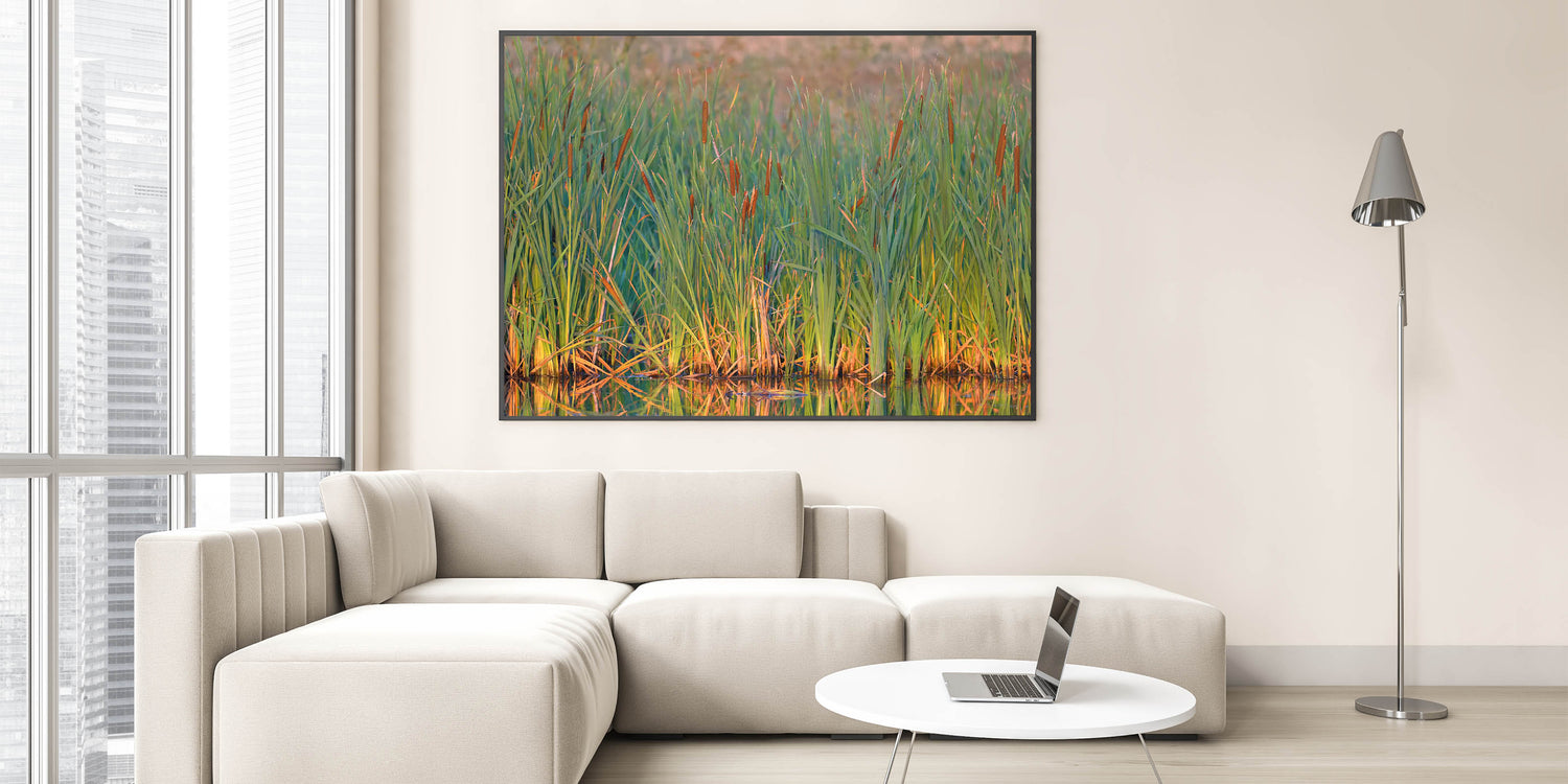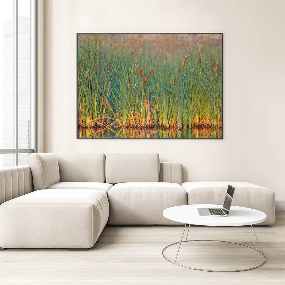 - Vibrant and Calming: The detailed depiction of cattails in natural sunlight brings a soothing and refreshing vibe to any space.