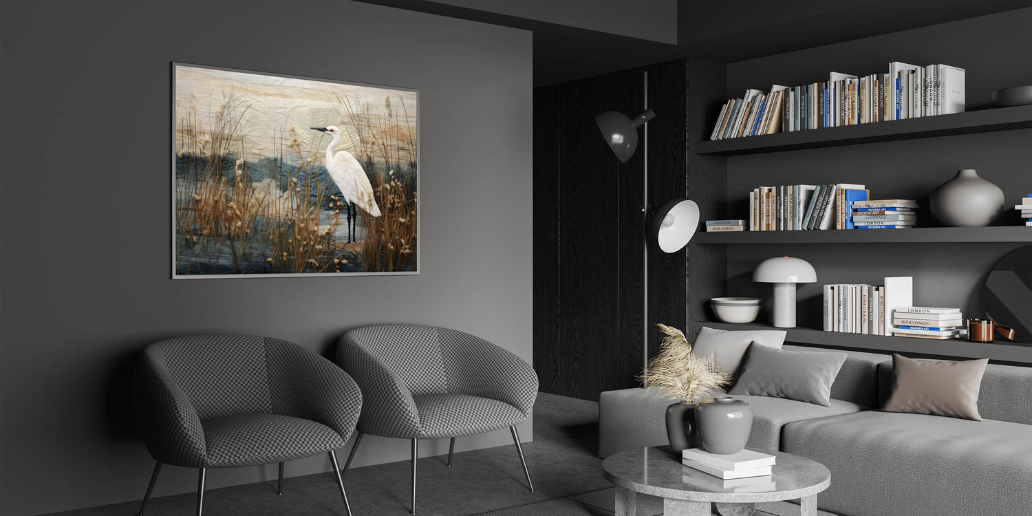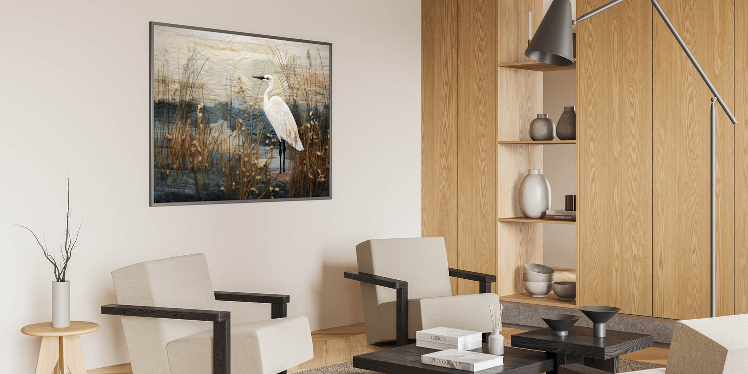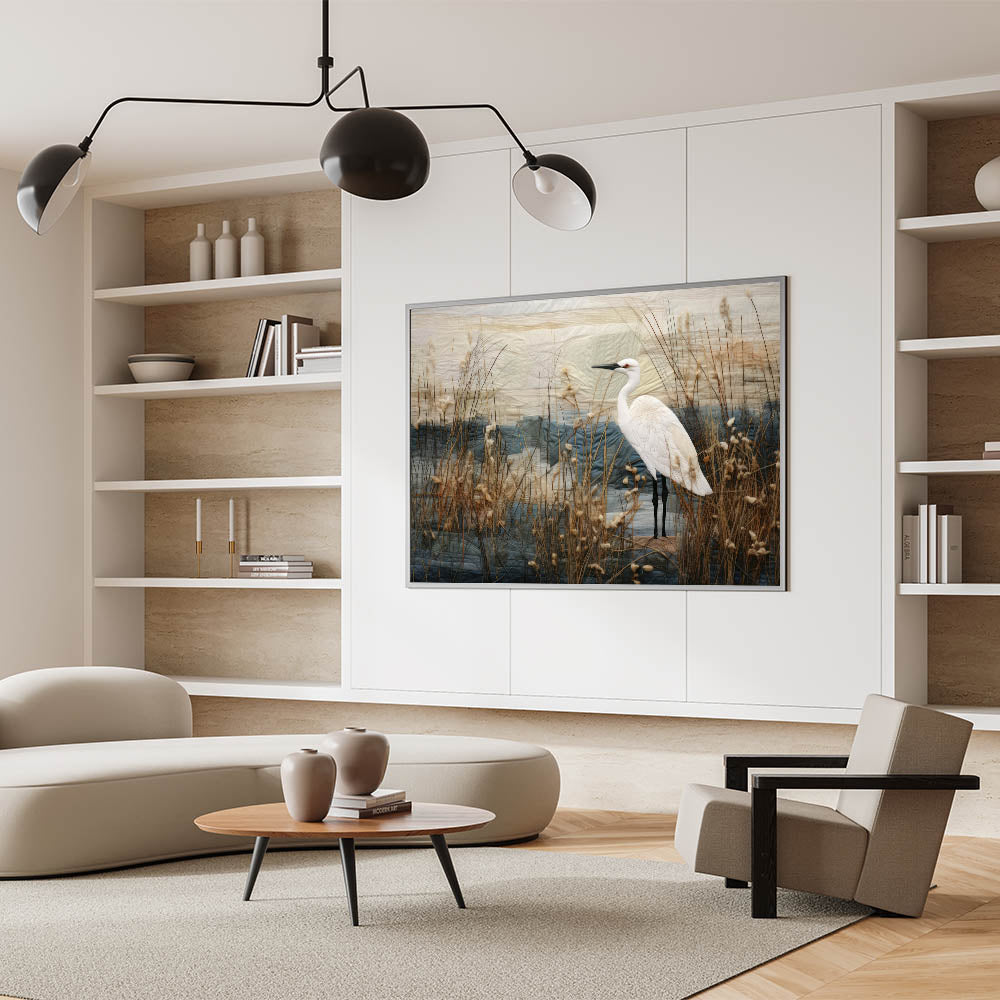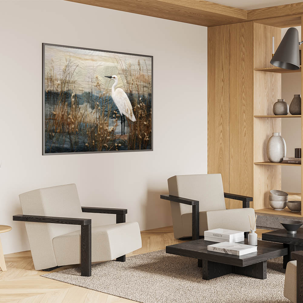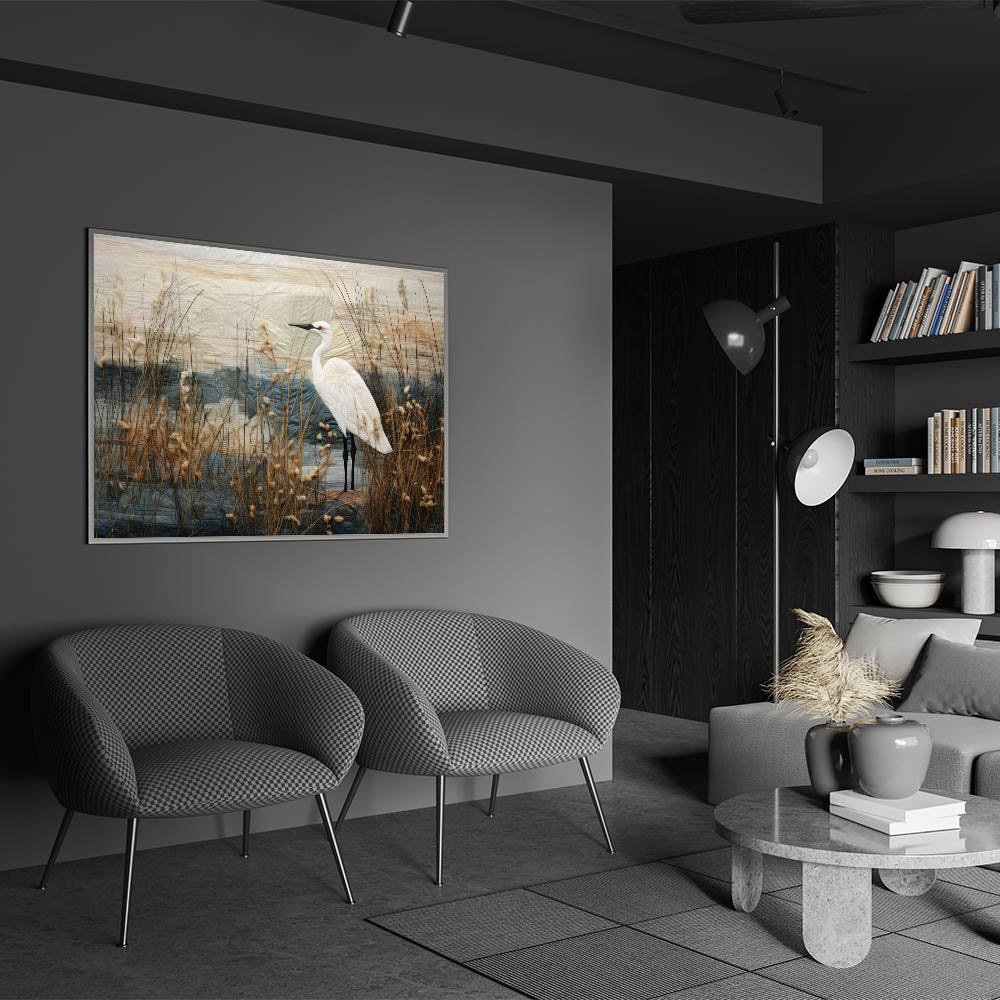 Add a unique and textured element to your decor with this captivating marsh and swamp wall art, featuring an elegant heron surrounded by reeds in a beautifully detailed scene. The combination of intricate textures and soft, earthy tones creates a rich and inviting atmosphere, perfect for those looking to bring a touch of nature's elegance into their home.
