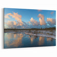 Embrace the serene beauty of winter with this stunning winter marshland wall art. Capturing a frosty landscape with delicate reflections on icy waters, this artwork showcases the peaceful stillness of a winter marsh. The scene is brought to life with soft hues of blue, white, and peach, as fluffy clouds drift across the sky. The intricate details of the frozen water and snow-covered ground provide a tranquil and calming atmosphere, making it a perfect addition to any space.