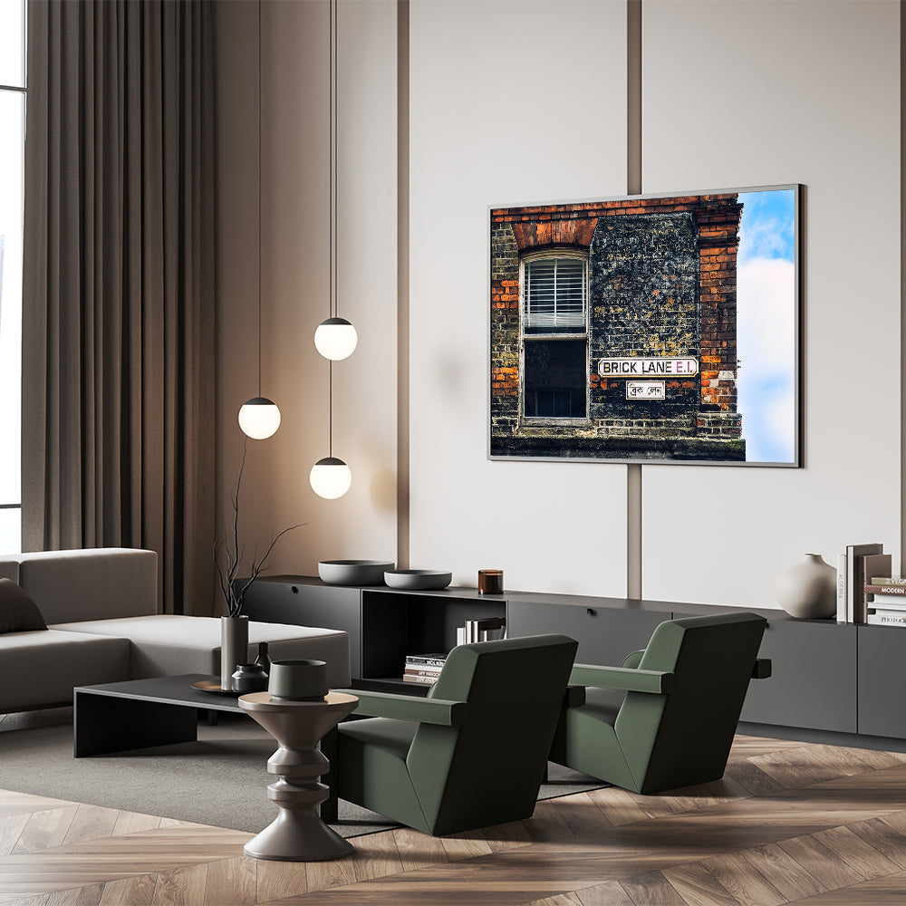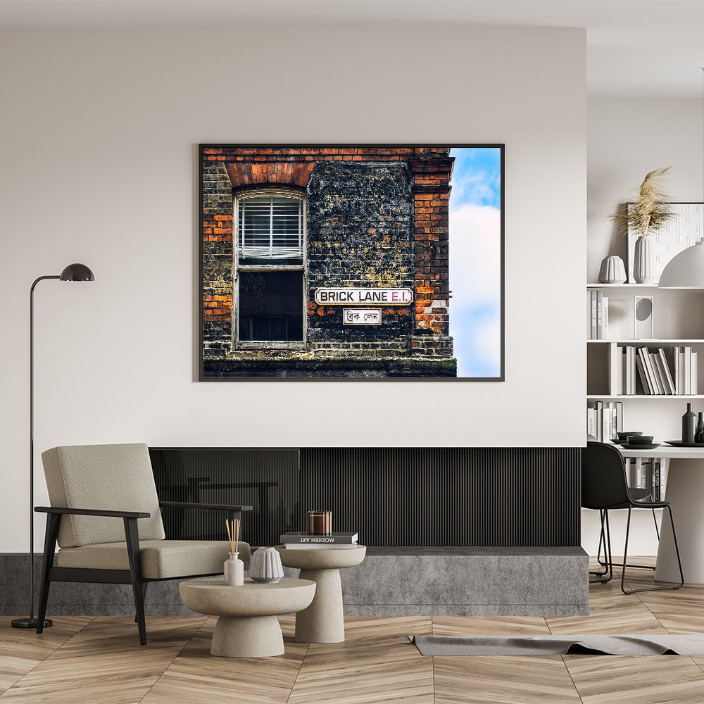 Capture the essence of Brick Lane with this stunning masonry wall art. Featuring the iconic brick patterns and urban details of one of London's most famous streets, this piece of brick and stone art adds a unique, architectural charm to your space. The blend of weathered bricks with the classic street sign evokes a rich history, making this masonry canvas print a perfect addition to any room with an industrial or urban aesthetic.