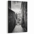 Step into the timeless beauty of historic architecture with this captivating Masonry Wall Art. This black-and-white photograph captures an ancient alleyway lined with rustic stone and brick walls, leading to a distant village. The play of light and shadow enhances the texture of the masonry, creating a sense of depth and atmosphere. Ideal for lovers of Brick and Stone Art, this piece adds a touch of classic European elegance to any space.