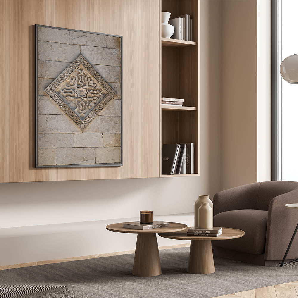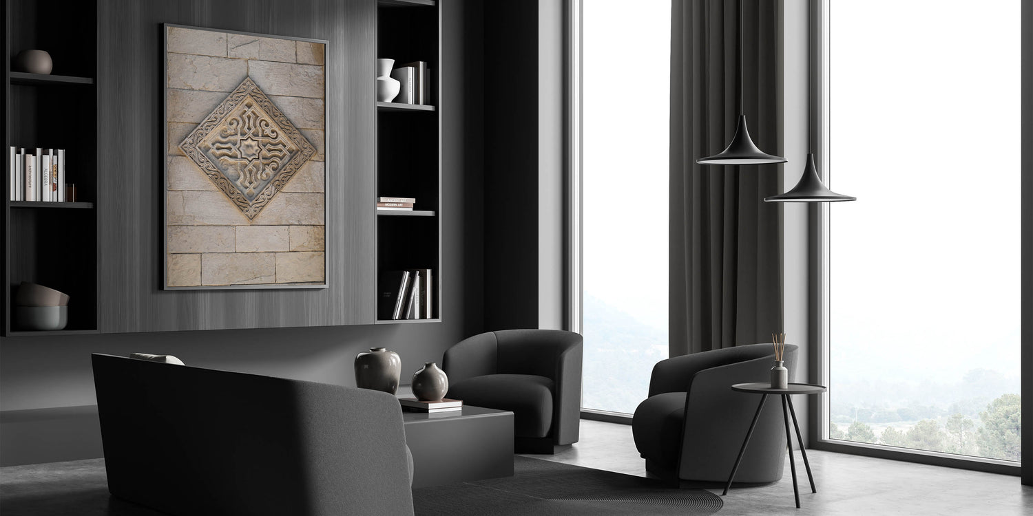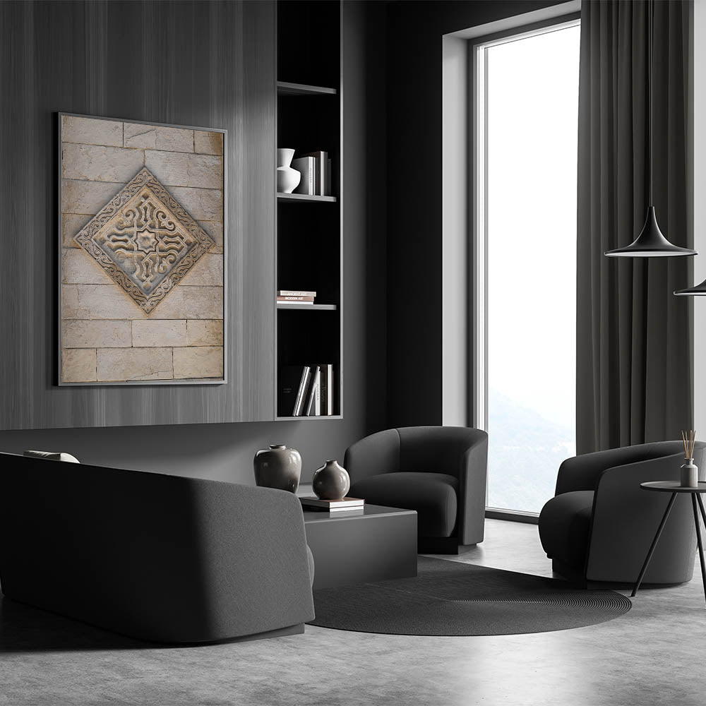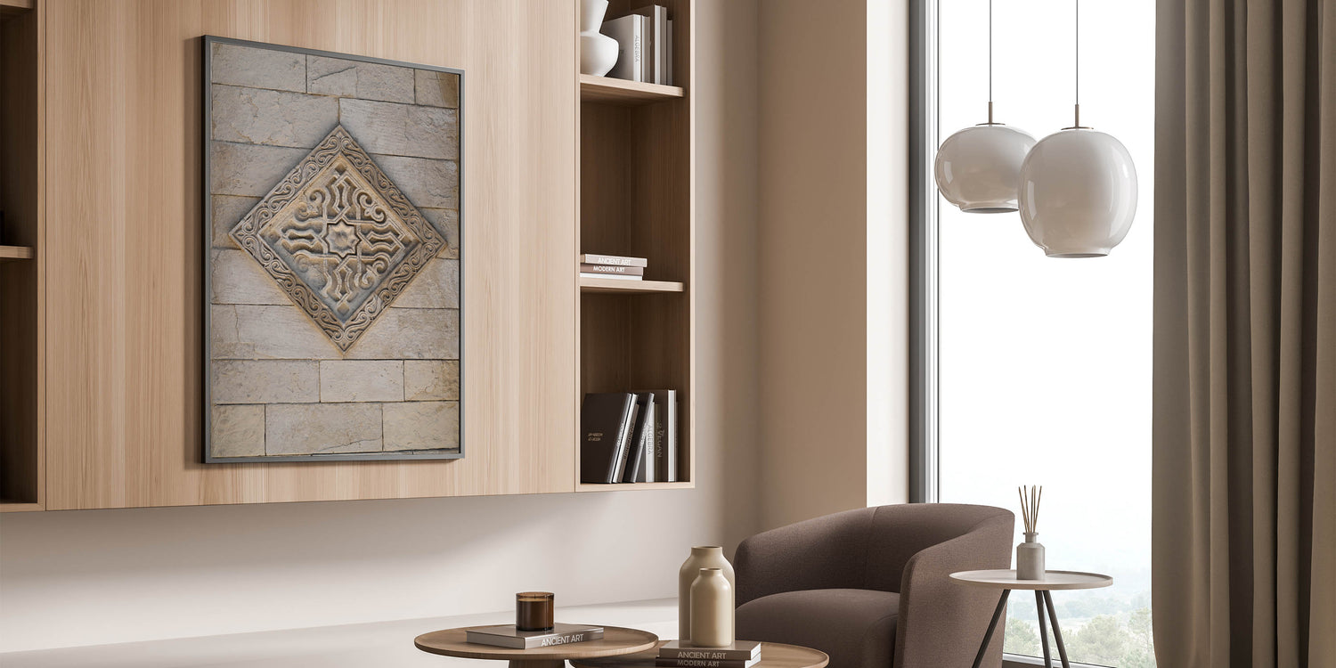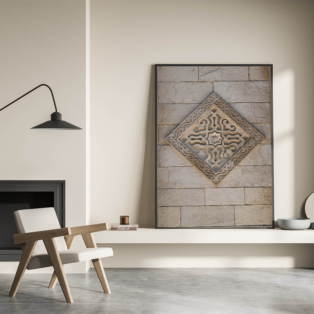 Masonry Wall Art - Ornate Stone Relief with Geometric Design Print