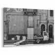 Capture the timeless charm of Italian street life with this stunning Masonry Wall Art. This black-and-white photograph showcases a vintage scene featuring a quaint street market with a truck filled with produce parked in front of weathered masonry buildings. The detailed textures of the stone and the nostalgic composition make this piece perfect for lovers of Brick and Stone Art and Rustic Masonry Decor.