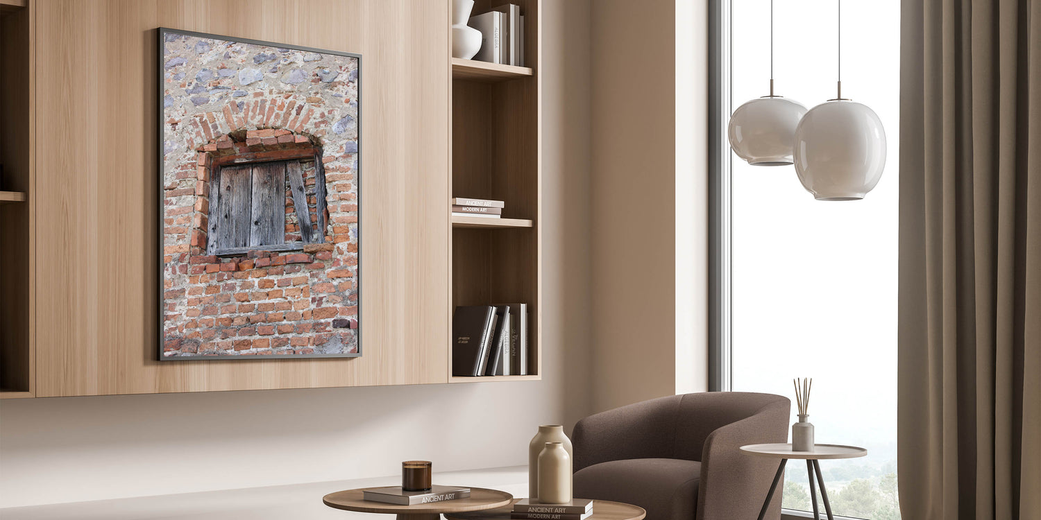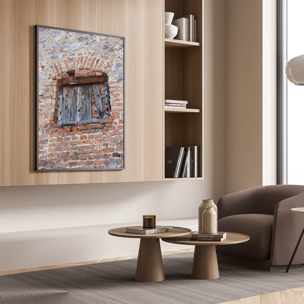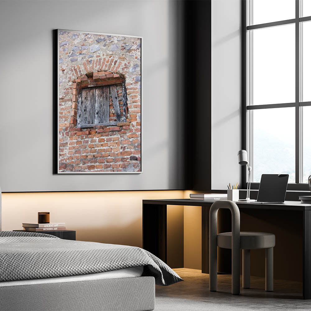 Bring a piece of history into your home with this unique masonry wall art featuring weathered brick and rustic wood. This brick and stone art beautifully captures the charm of an old building, showcasing the intricacies of time-worn materials. The detailed masonry canvas print emphasizes the character and texture of the brick and wood, making it a perfect piece for lovers of vintage and rustic decor.