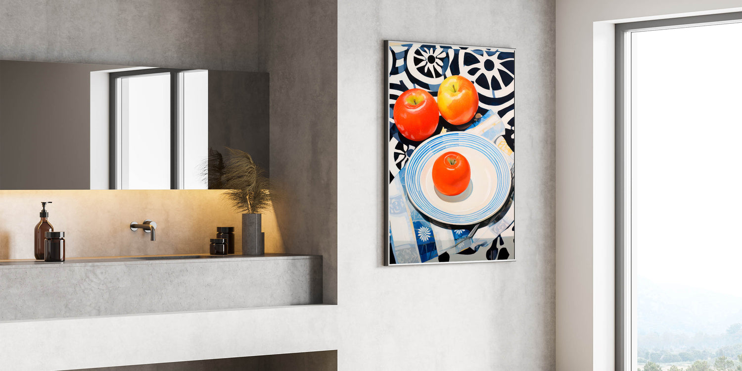 Maximalist Still Life Wall Art with Bold Apple and Plate Eclectic Design