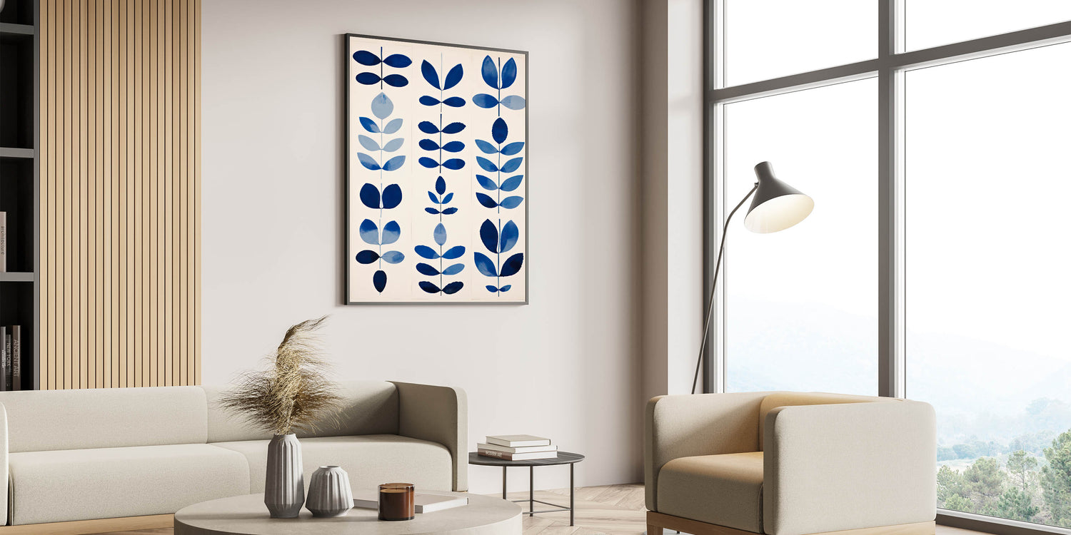 Maximalist Wall Art - Bold Blue Leaf Print for Eclectic Home Decor