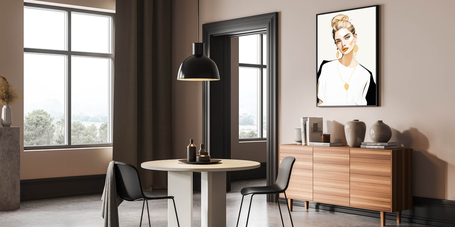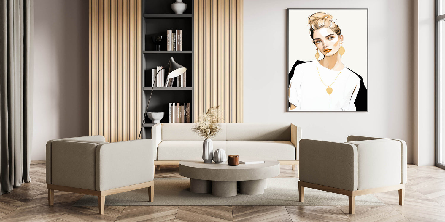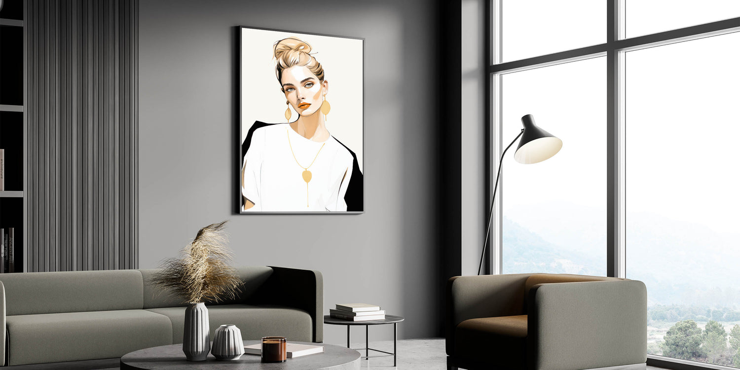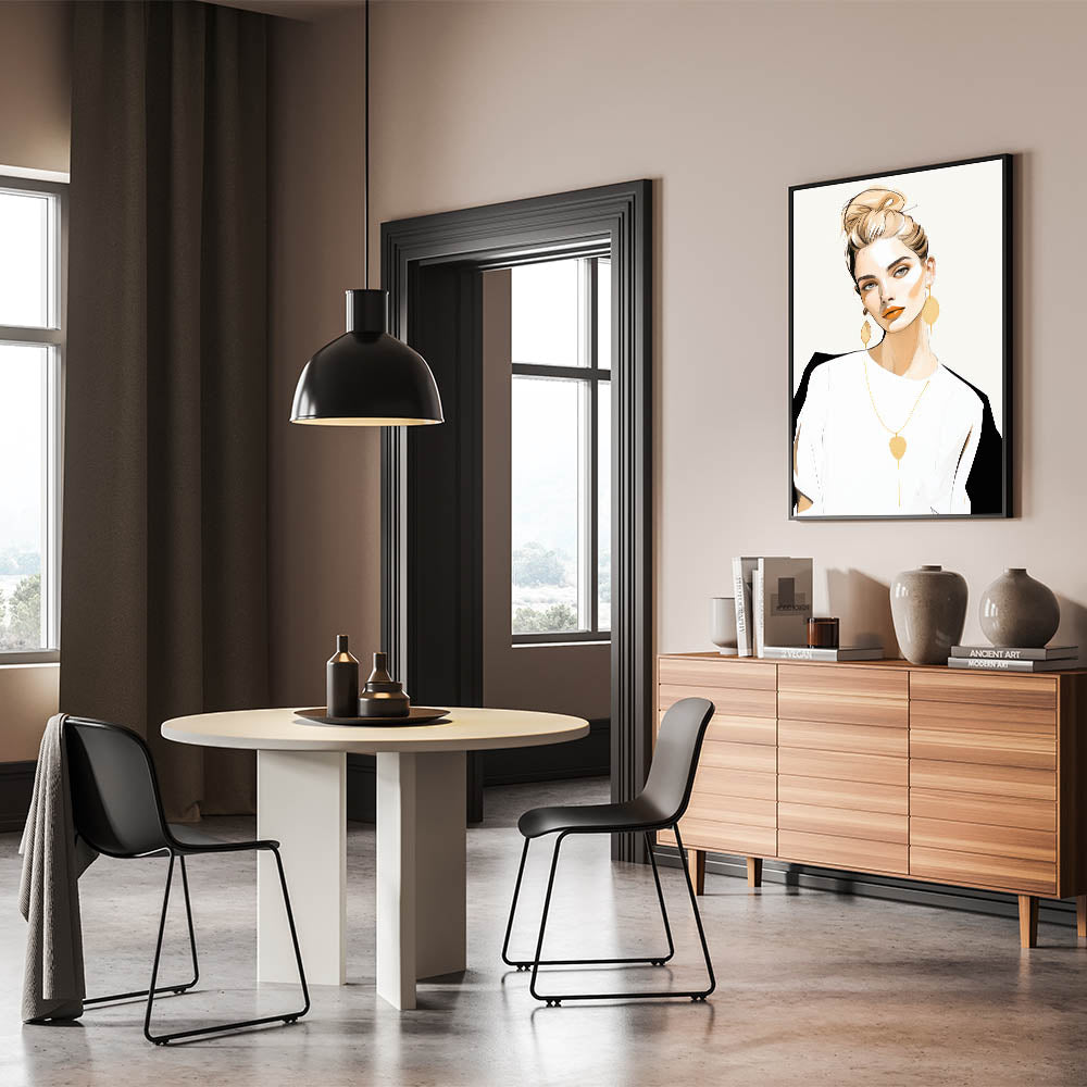 This expressive artwork is ideal for modern living rooms, bedrooms, or even office spaces. With its blend of simplicity and boldness, this portrait will add sophistication and character to any room. It’s the perfect piece for those looking to embrace the vibrant and eclectic spirit of maximalism.