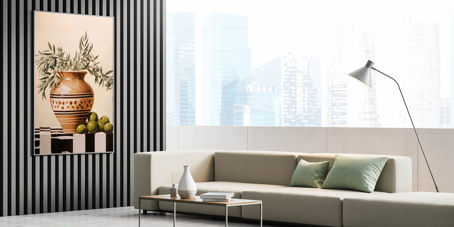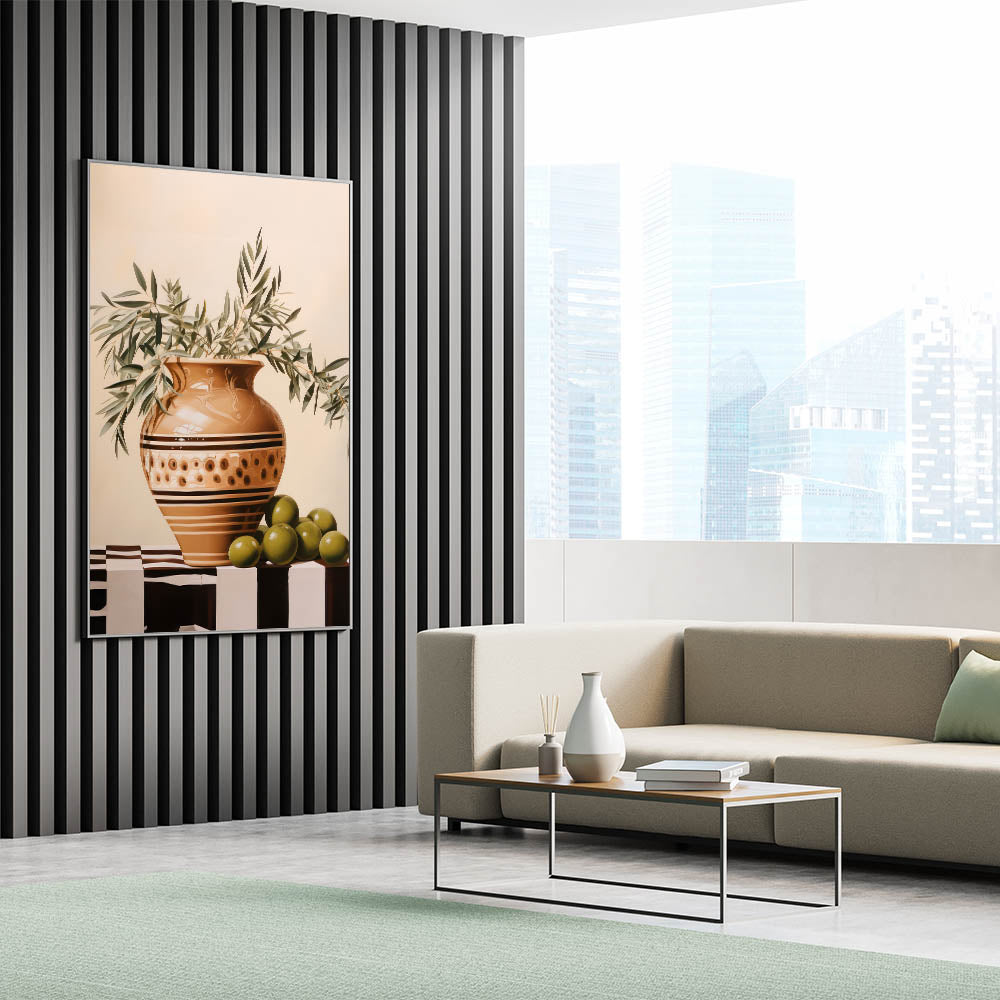 Maximalist Wall Art - Bold Still Life with Olive Vase - Vibrant Decor Piece