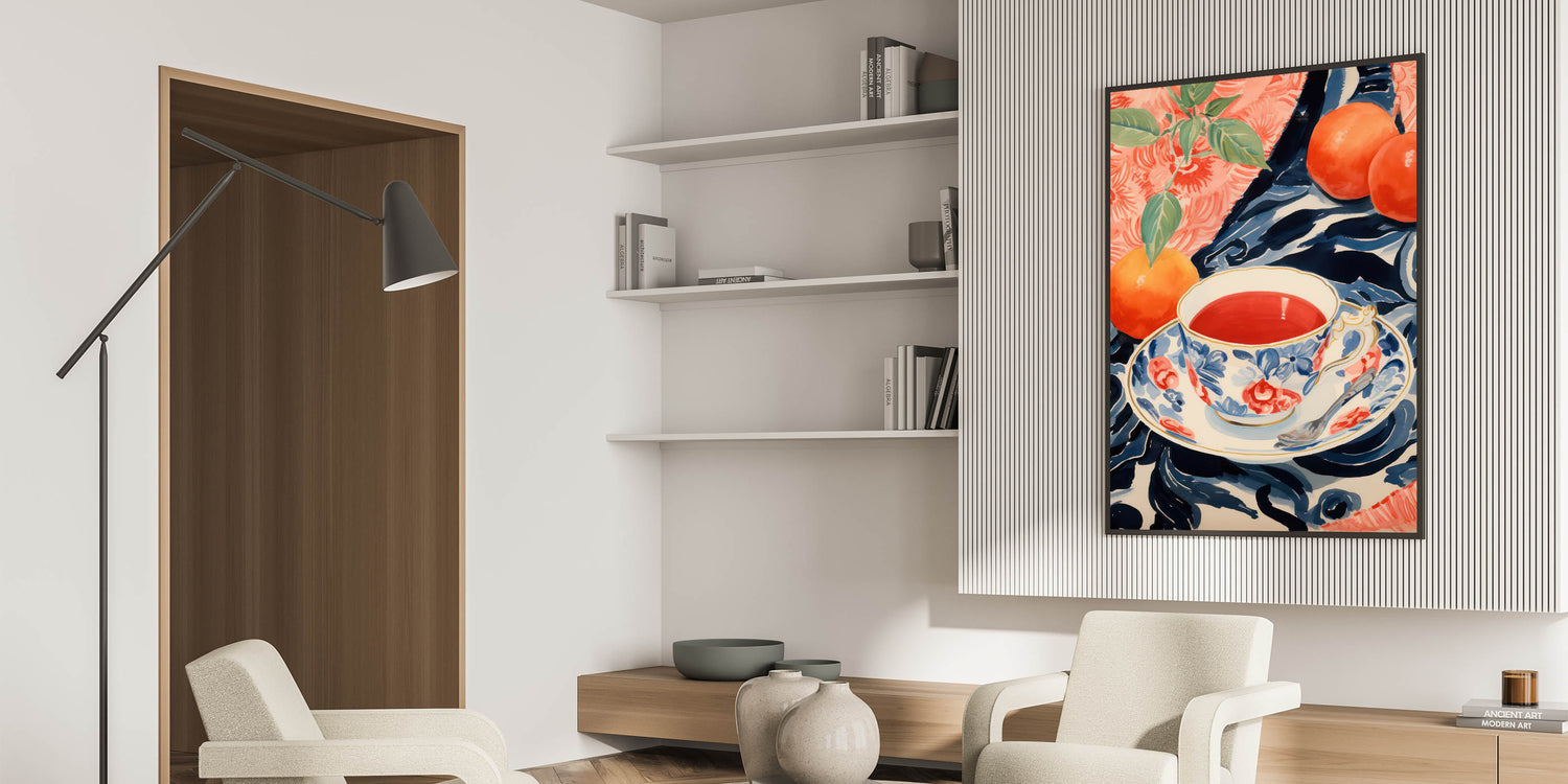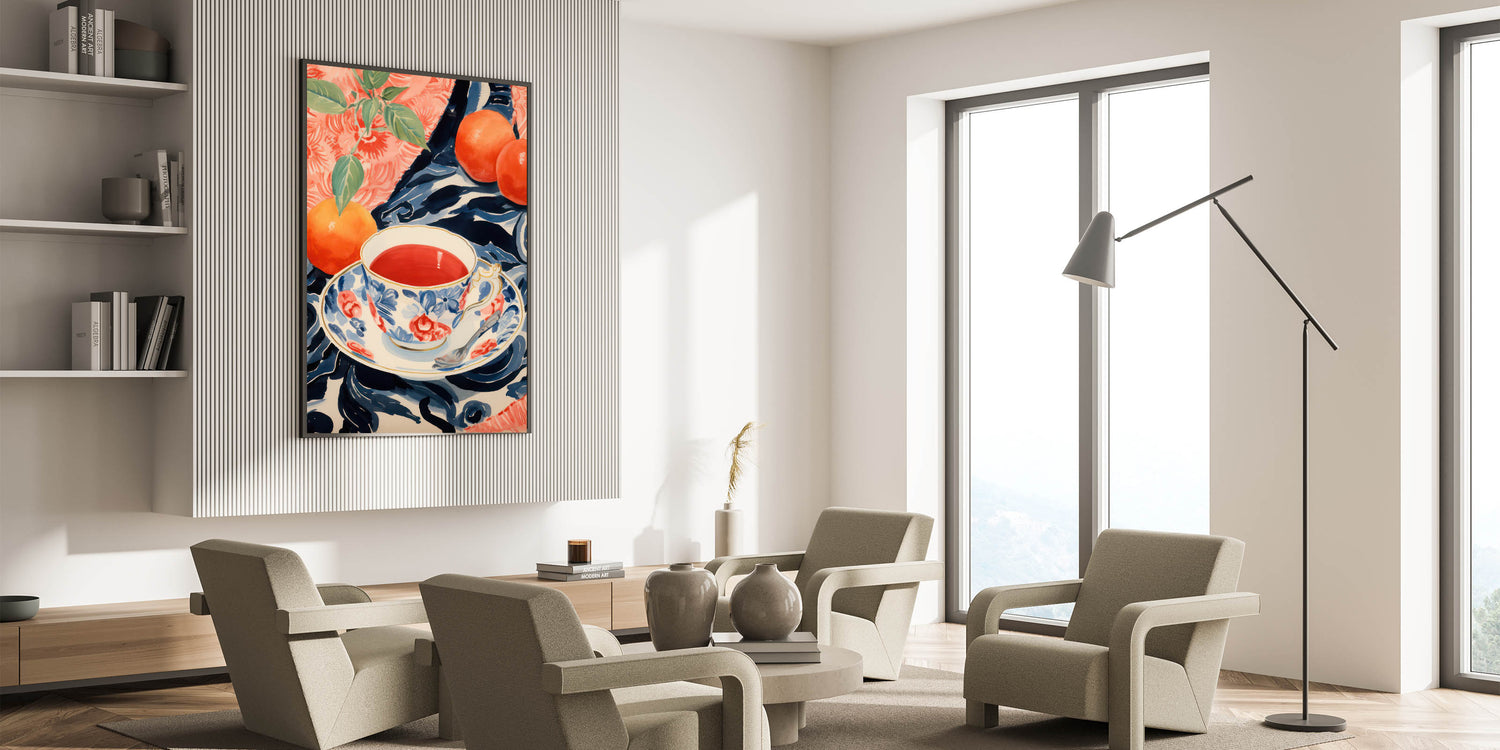 Maximalist Wall Art - Eclectic Bold Decor with Vibrant Tea Cup Design