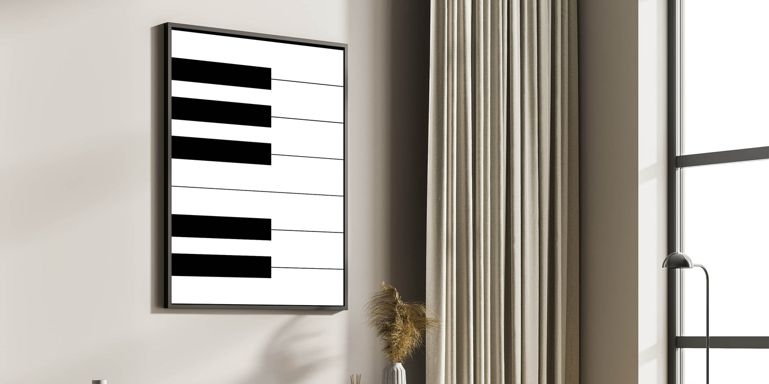 • Bold monochrome design: The black and white piano keys create a visually striking contrast.