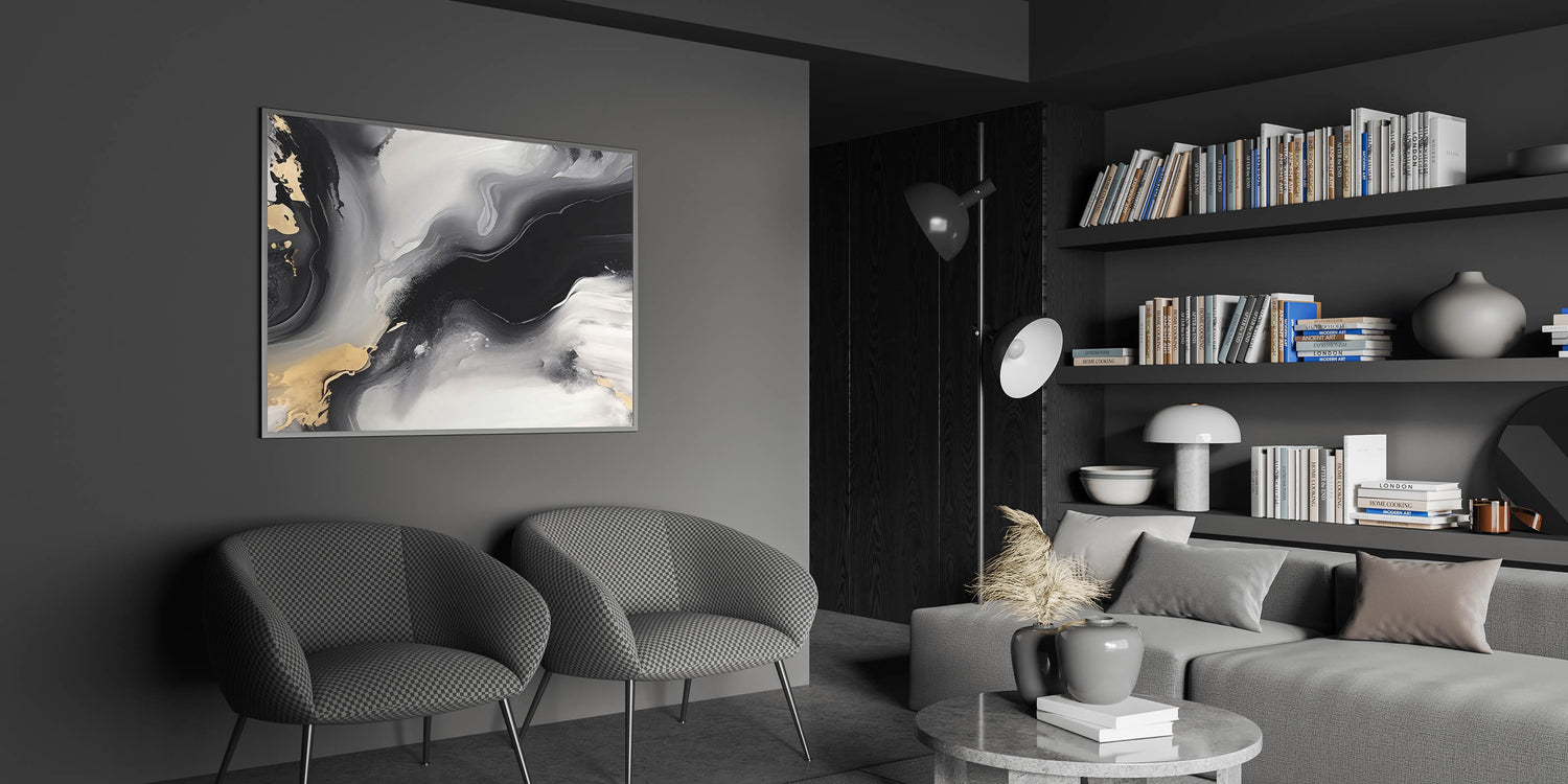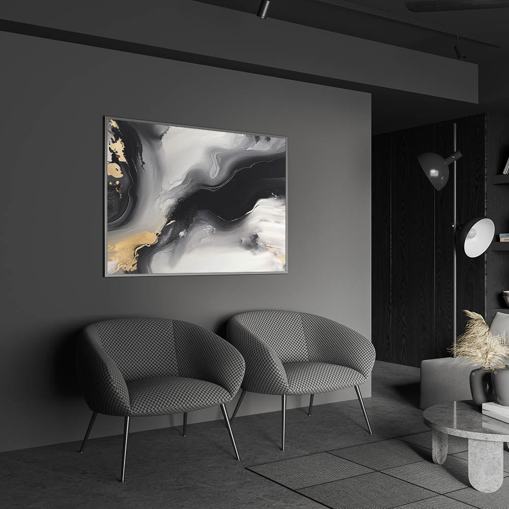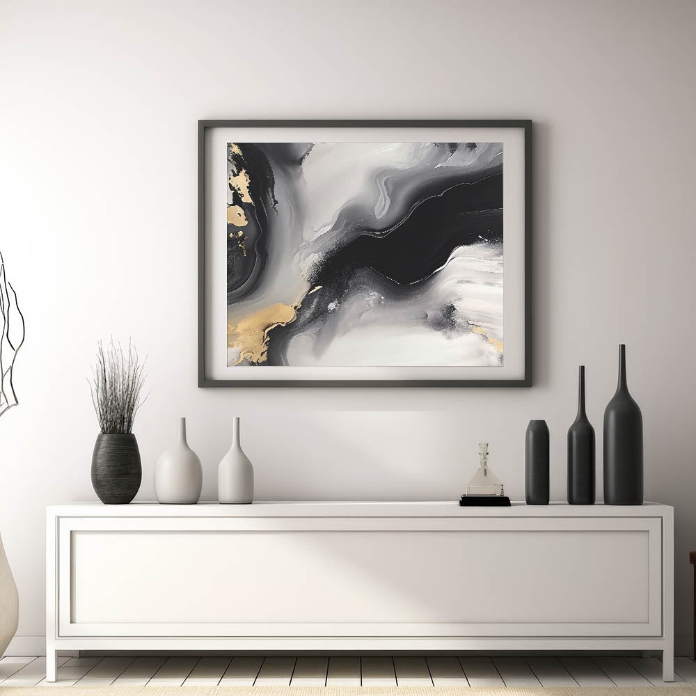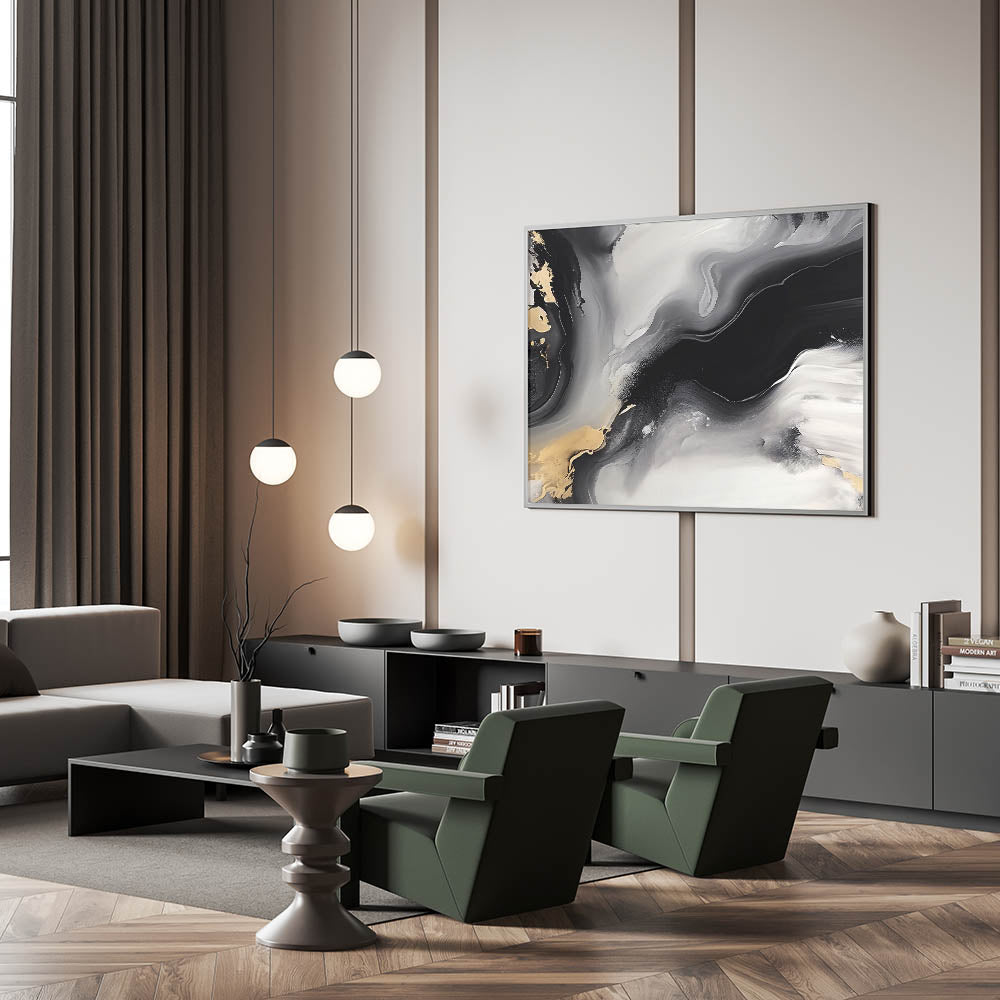 - Bold Design: The striking combination of black, white, and gold makes this artwork a perfect focal point for modern and minimalist spaces.