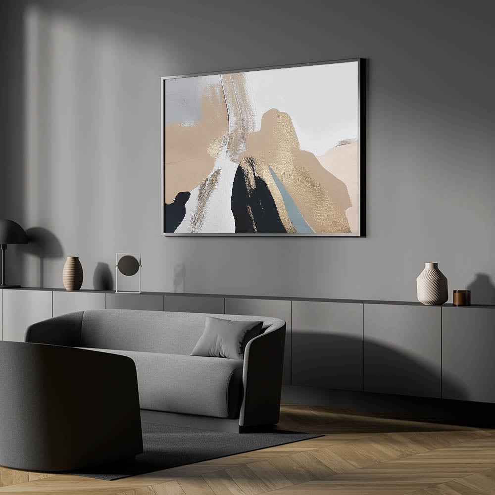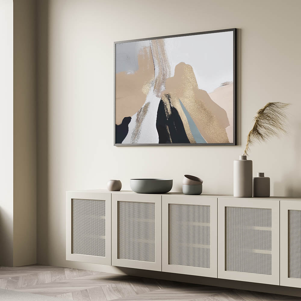 Infuse your space with elegance through this Abstract Minimalist Strokes and Lines Art. This sophisticated piece showcases a stunning blend of beige, gold, and white tones, creating a harmonious balance of softness and luxury. The subtle brush strokes and metallic accents give this artwork a refined and contemporary feel, making it perfect for any modern or minimalist decor.