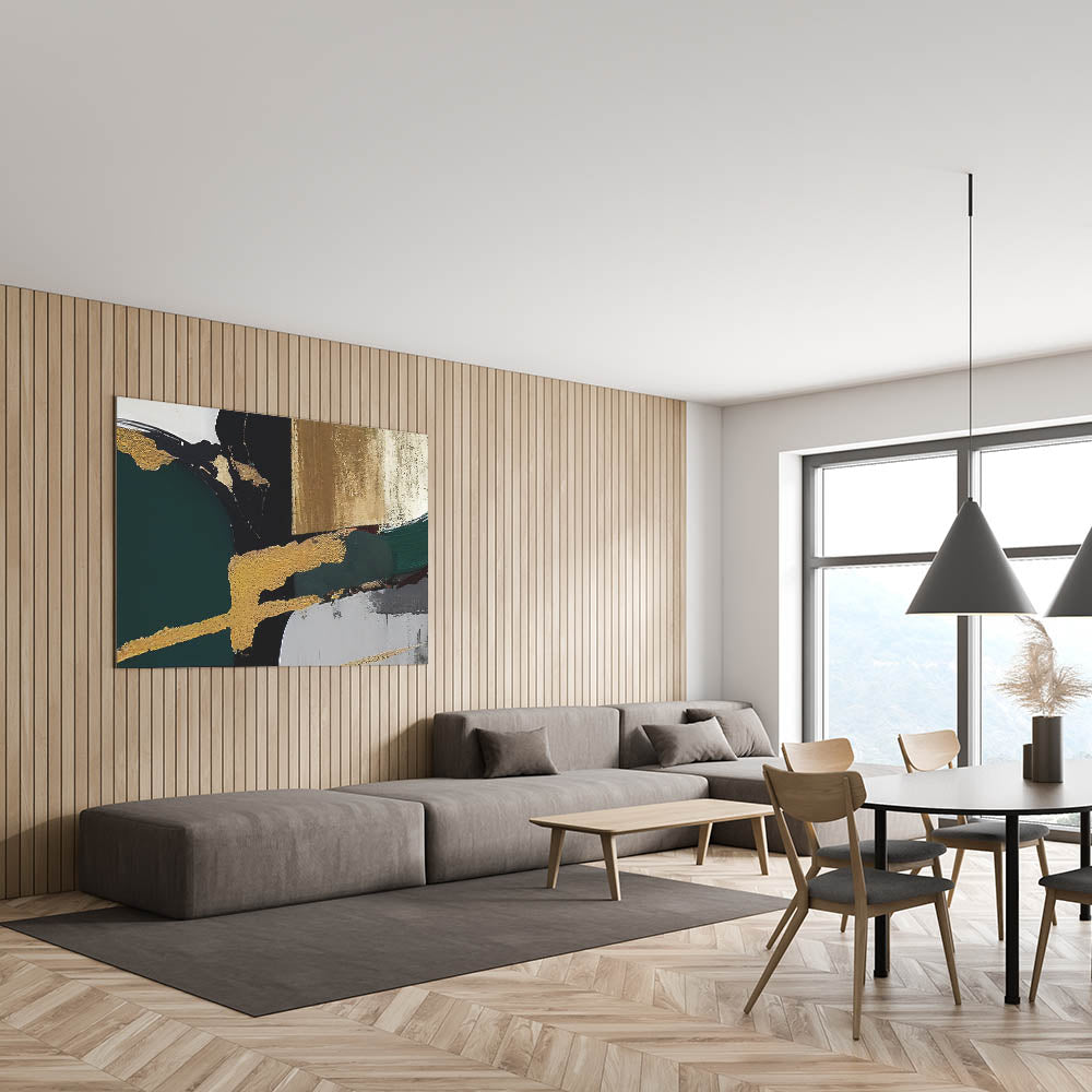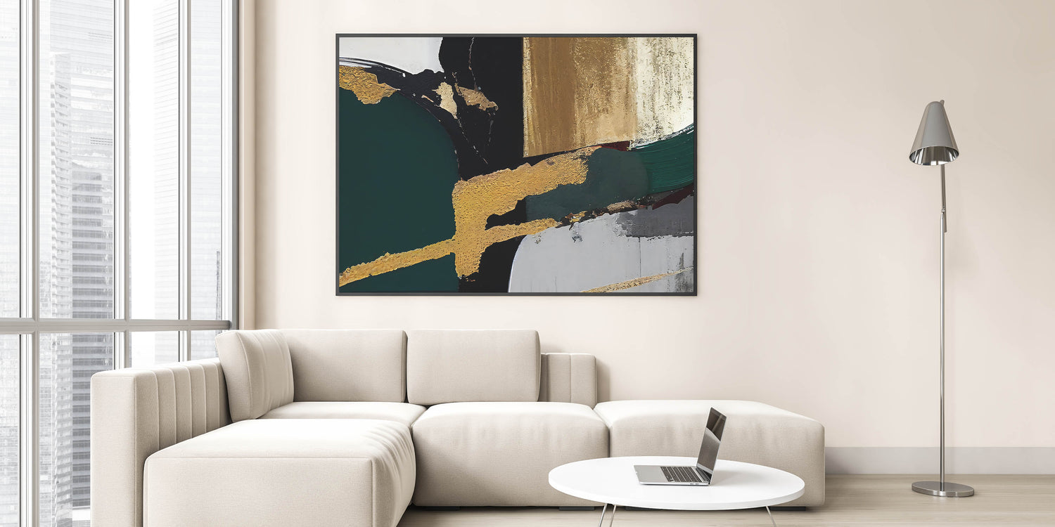 Bold Geometric Abstract Canvas Art | Modern Green and Gold Decor