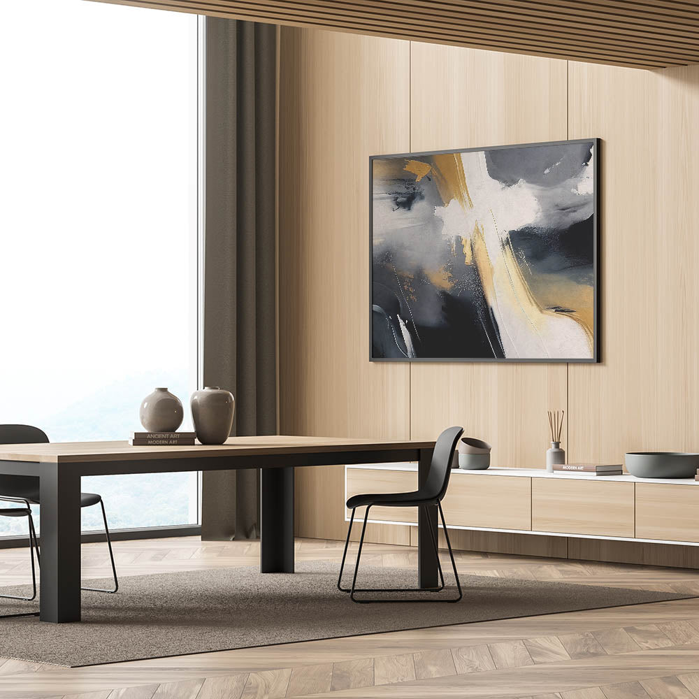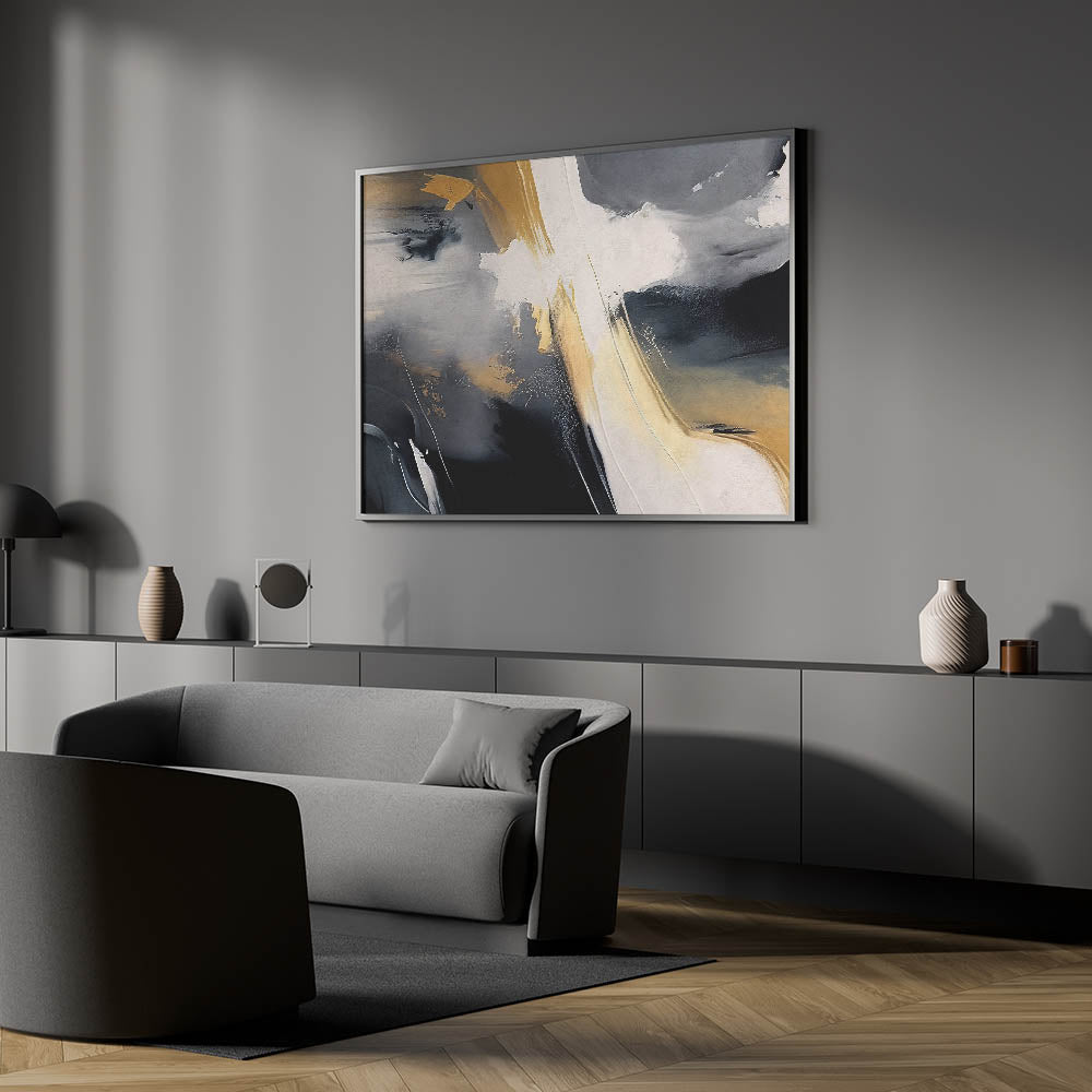 Dynamic Abstract Strokes Canvas Art | Modern Black and Gold Decor