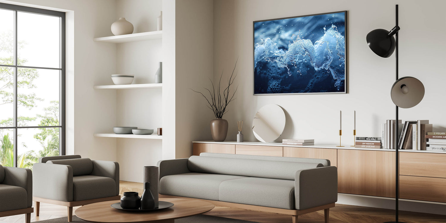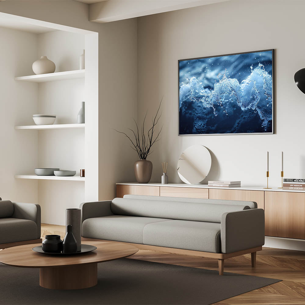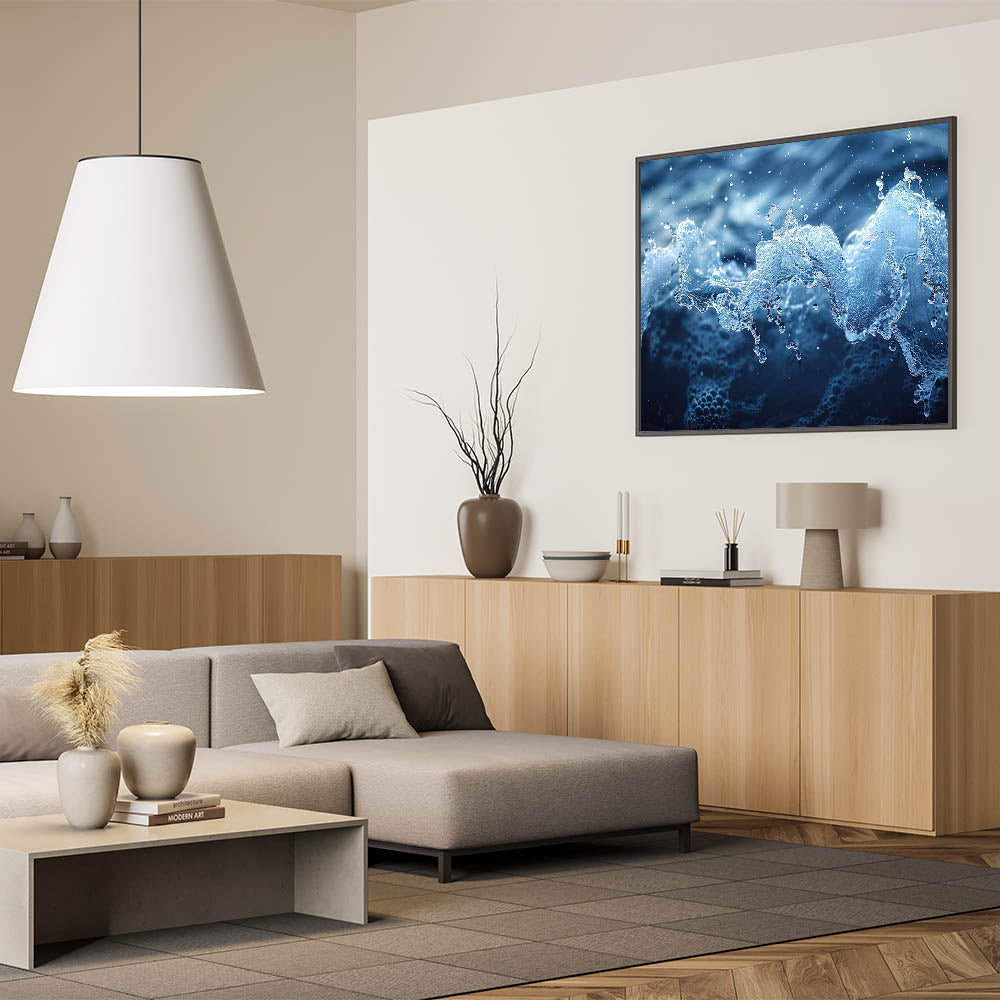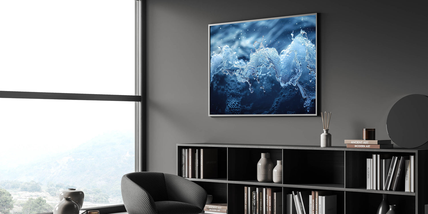 Available in a variety of formats, this water-themed wall art makes an excellent choice for modern and minimalistic spaces. Bring the tranquility and energy of water into your home with this breathtaking design.
