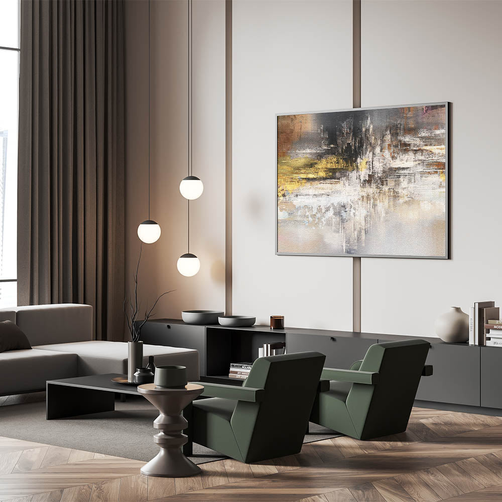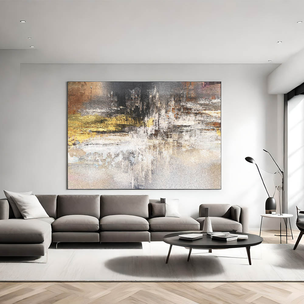 Enhance your space with this unique abstract splatter art that seamlessly combines metallic tones with a modern design. This piece is perfect for art lovers who appreciate contemporary elegance and want to make a sophisticated statement with their wall decor.