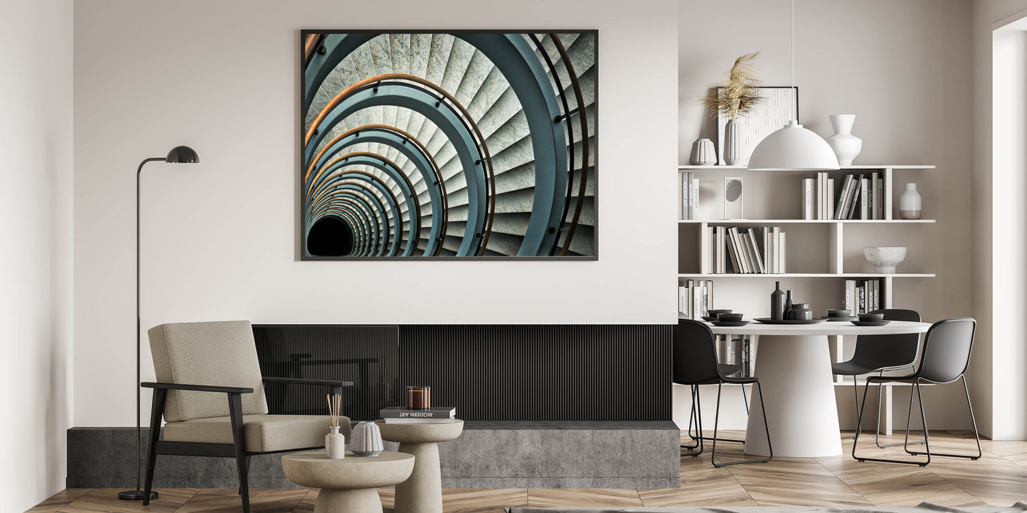 Elegant Spiral Staircase Wall Art - Architectural Canvas & Framed Prints