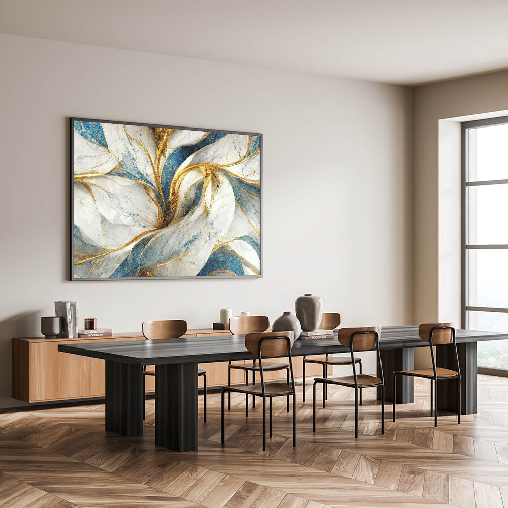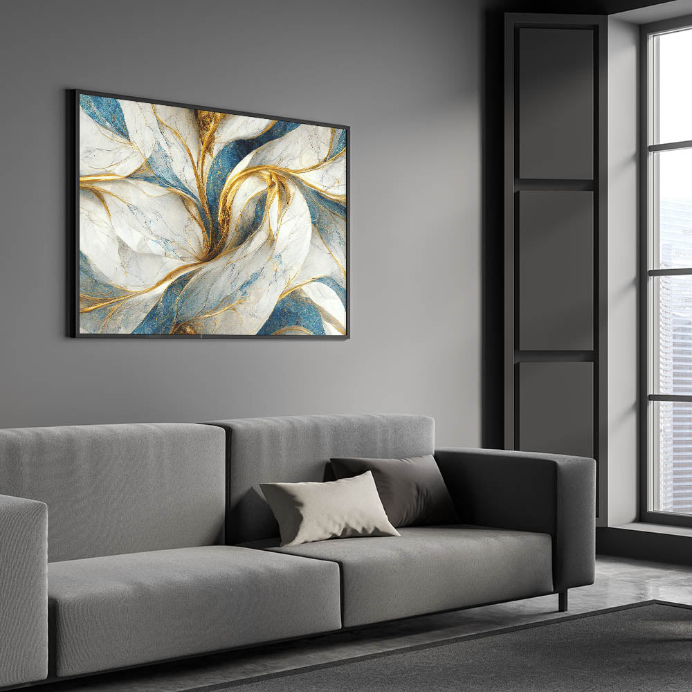 - Luxurious Design: Showcases a refined blend of gold accents and deep blue strokes, creating a visually captivating and opulent composition.