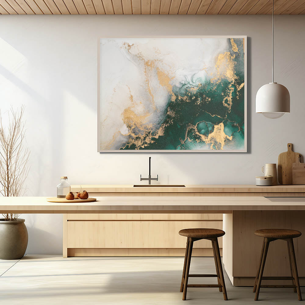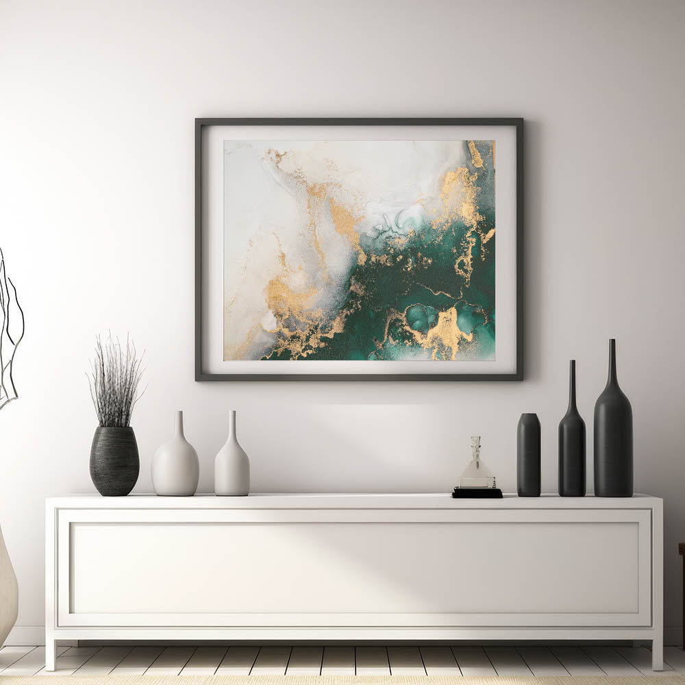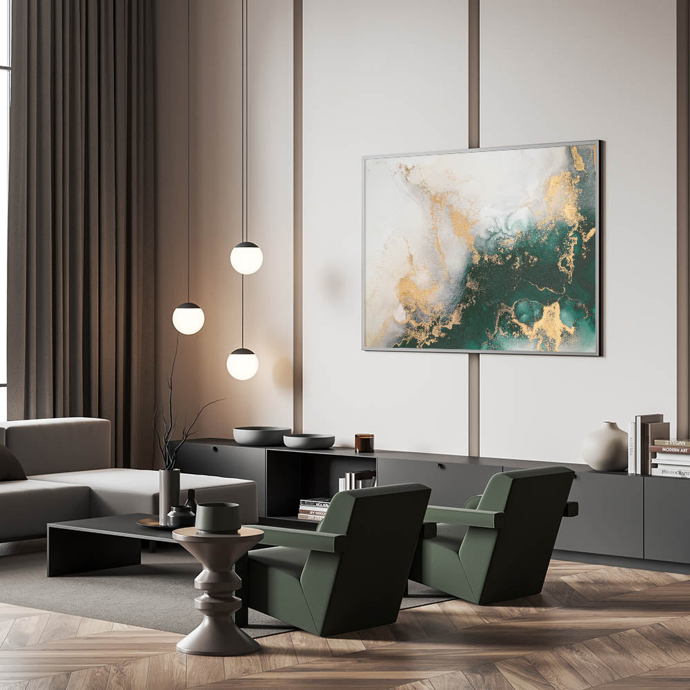 - Luxurious Design: Showcases a refined blend of gold accents and deep green strokes, creating a visually captivating and opulent composition.