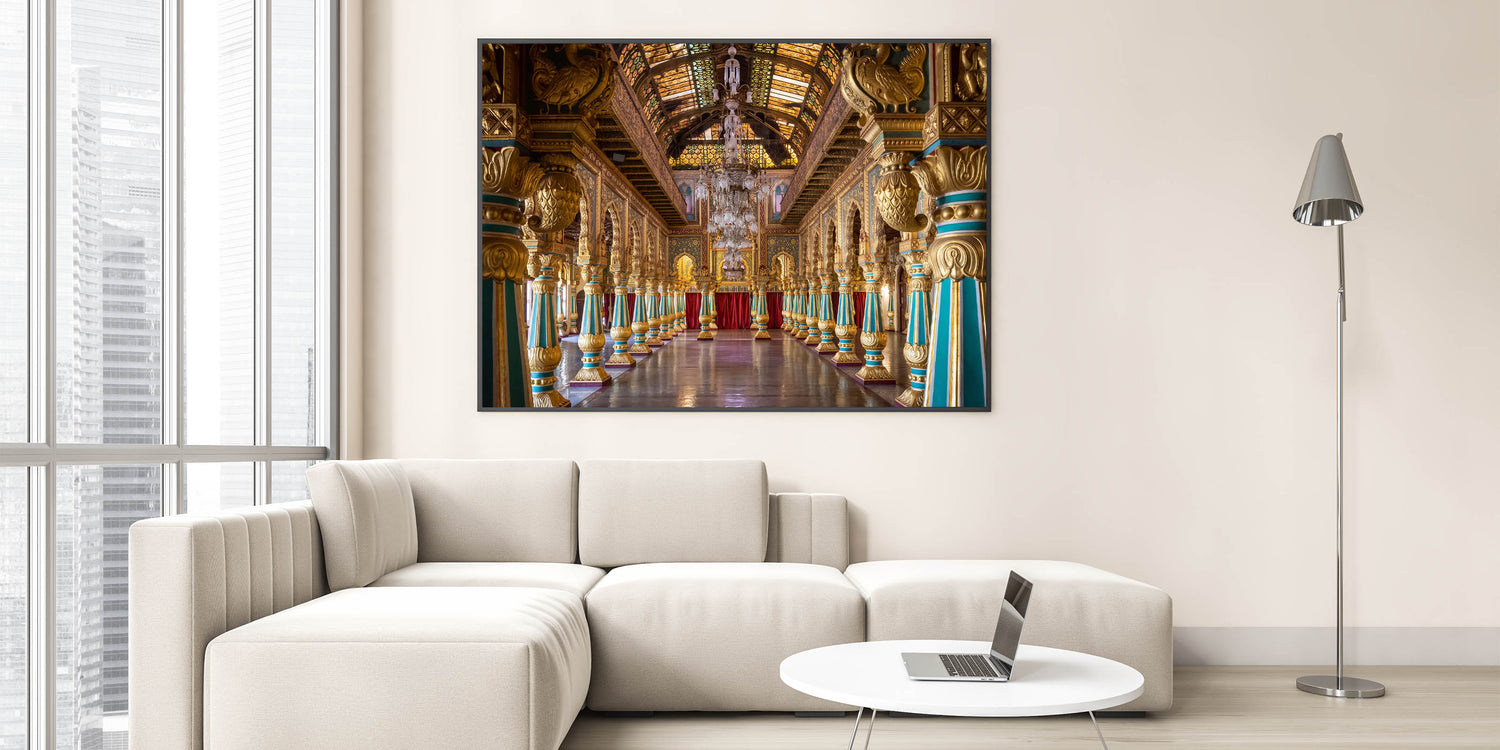 Experience the opulence of royal interiors with this breathtaking palace wall art. This artwork captures the grandeur and intricate craftsmanship of a historical palace’s interior, making it an exceptional piece for any room. With its rich details and luxurious colors, this print is perfect for those who appreciate fine art and architectural beauty.