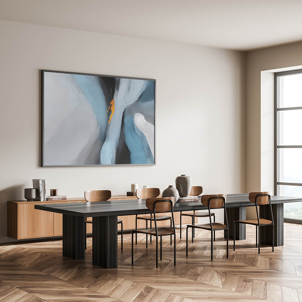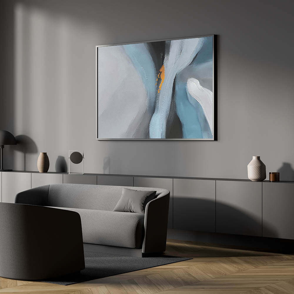 This modern monochrome artwork is designed to add a touch of sophistication to your home or office. Whether you're looking to enhance a living room, bedroom, or hallway, the combination of black, gray, and gold will bring a refined and stylish atmosphere to your decor.