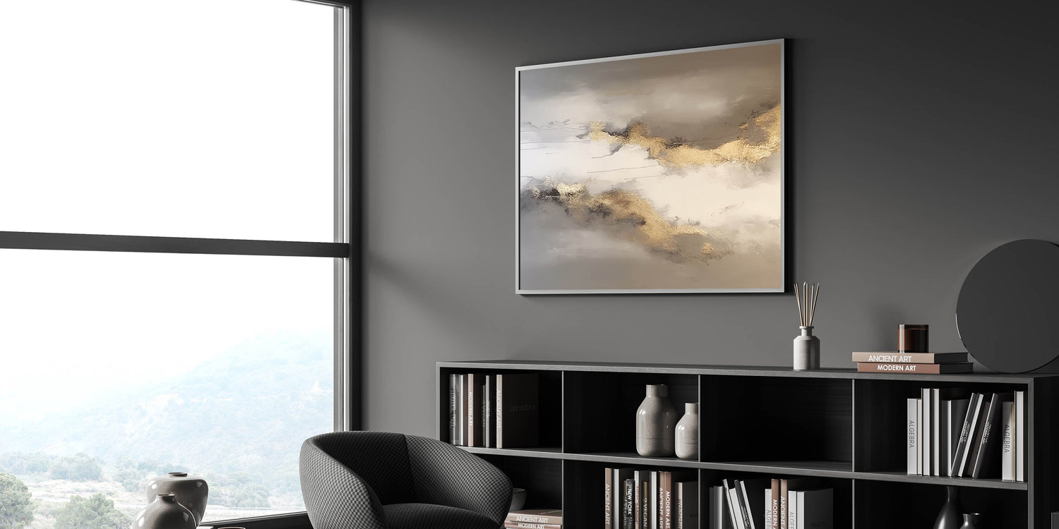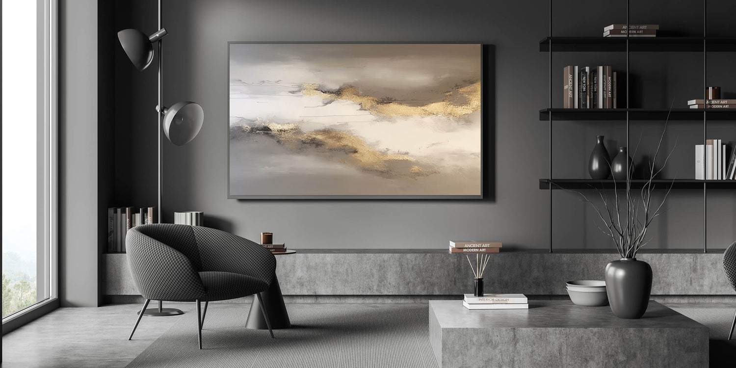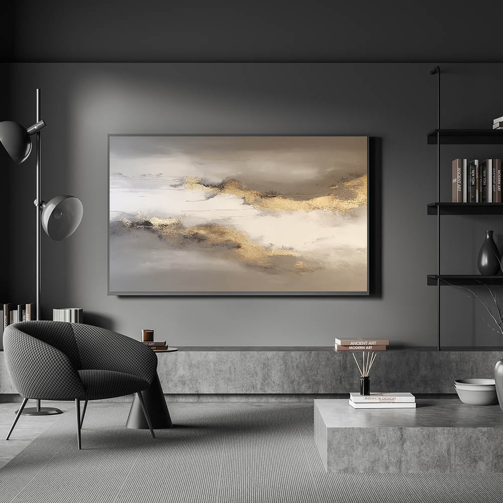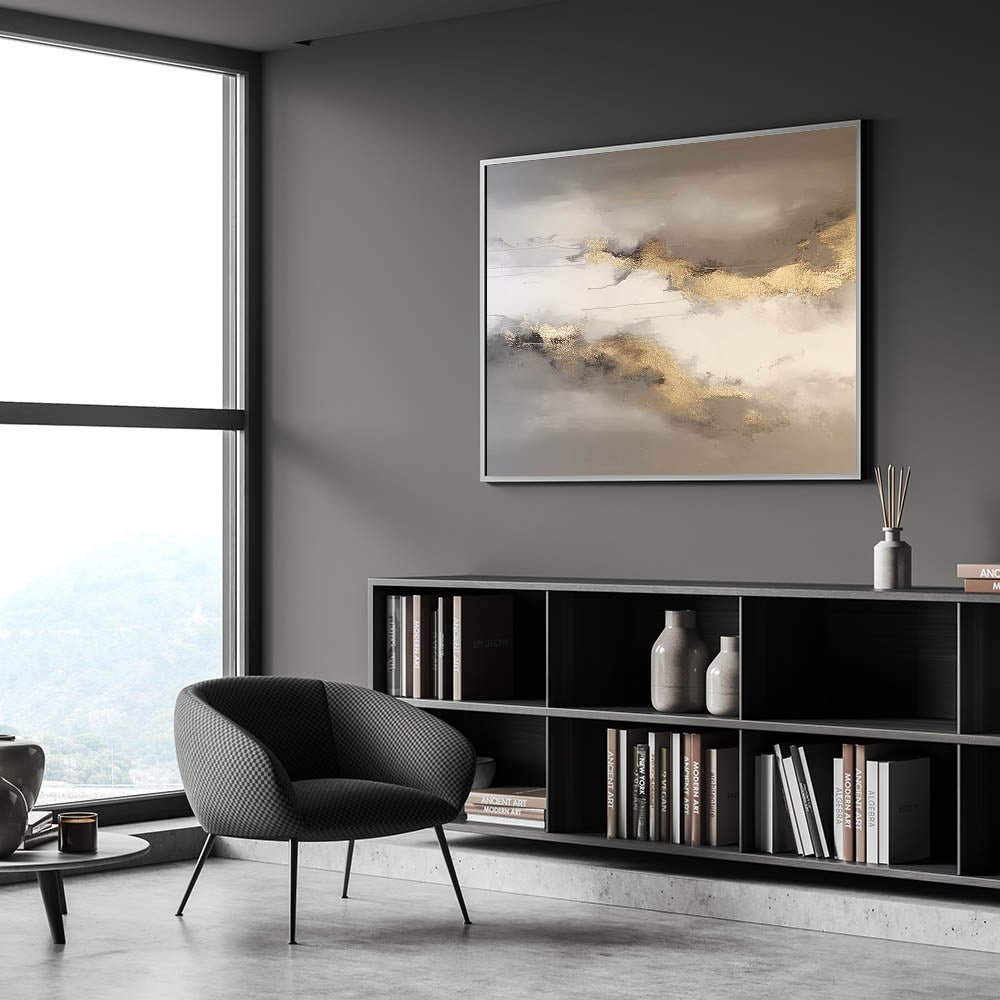 Elevate your interior decor with this Modern Monochrome Strokes and Lines Abstract Art, a sophisticated piece featuring a blend of metallic textures and subtle, neutral tones. This artwork embodies a perfect balance between simplicity and elegance, making it a striking addition to any contemporary or modern space. Whether you’re decorating a living room, office, or bedroom, this piece’s muted palette and luxurious gold accents will bring a touch of refinement to your decor.