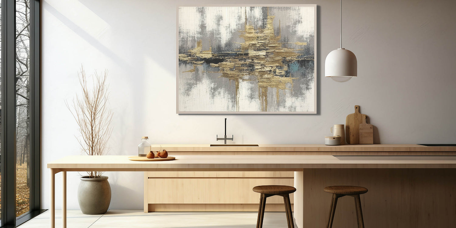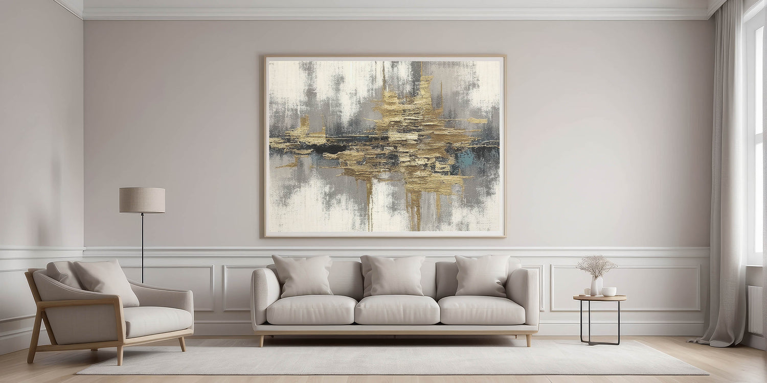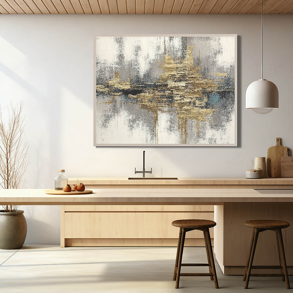 Introduce a sense of luxury and texture to your space with this stunning abstract strokes art piece. Featuring a rich blend of gold and gray tones, the textured design creates a dynamic and sophisticated look that captures attention. The intricate layering of colors and textures adds depth, making this artwork a perfect addition to modern and contemporary interiors.