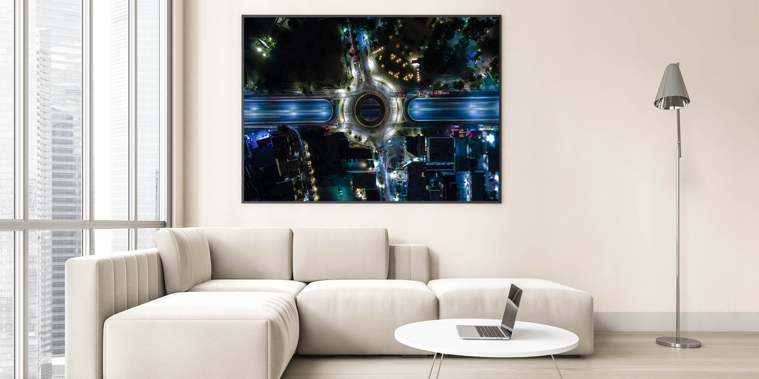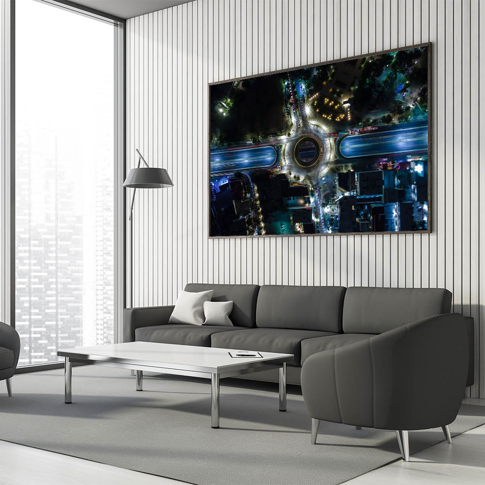 Bring the energy of Mexico City's vibrant nightlife into your home or office with this dynamic aerial view. Perfect for lovers of cityscapes and modern decor.