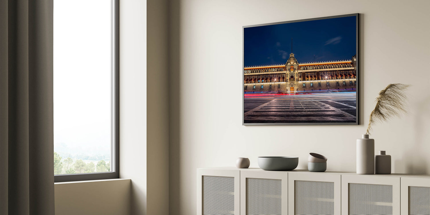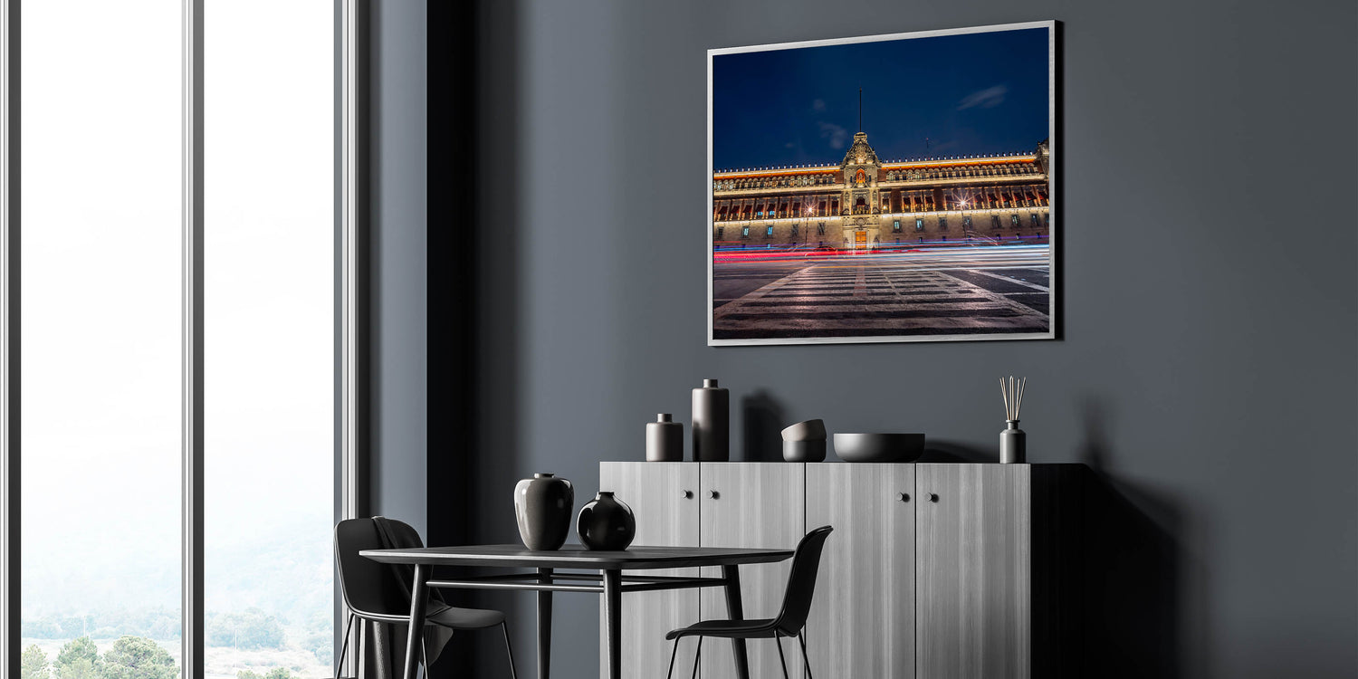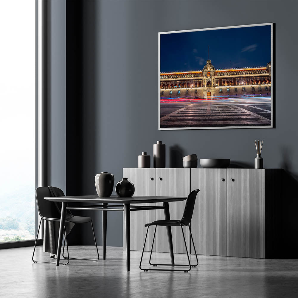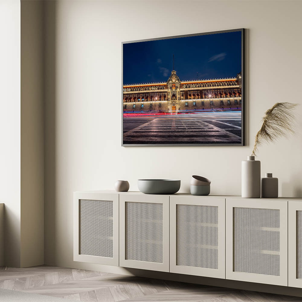 Bring the architectural beauty of Mexico City into your home with this dynamic night view of the National Palace. Perfect for art lovers, travelers, and those with a passion for Mexico’s rich history and culture.