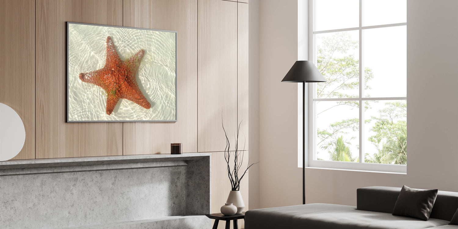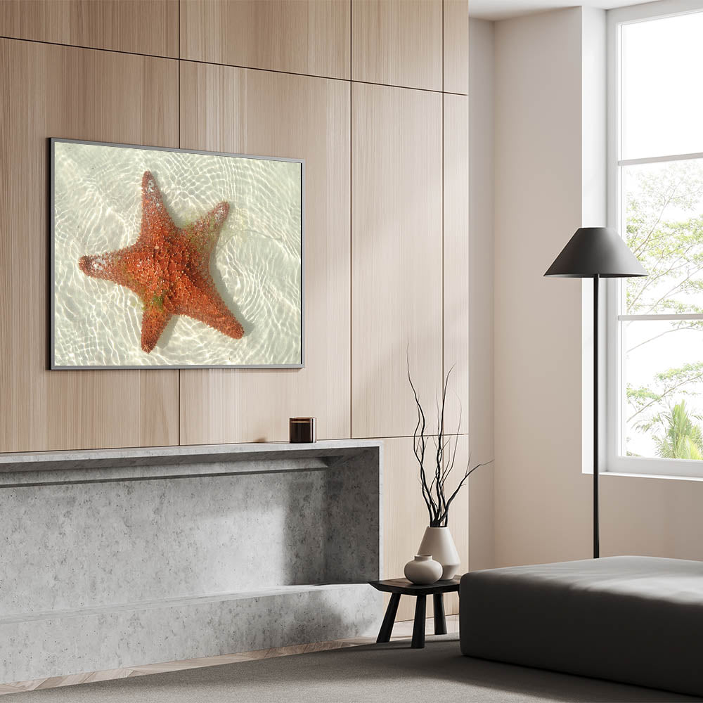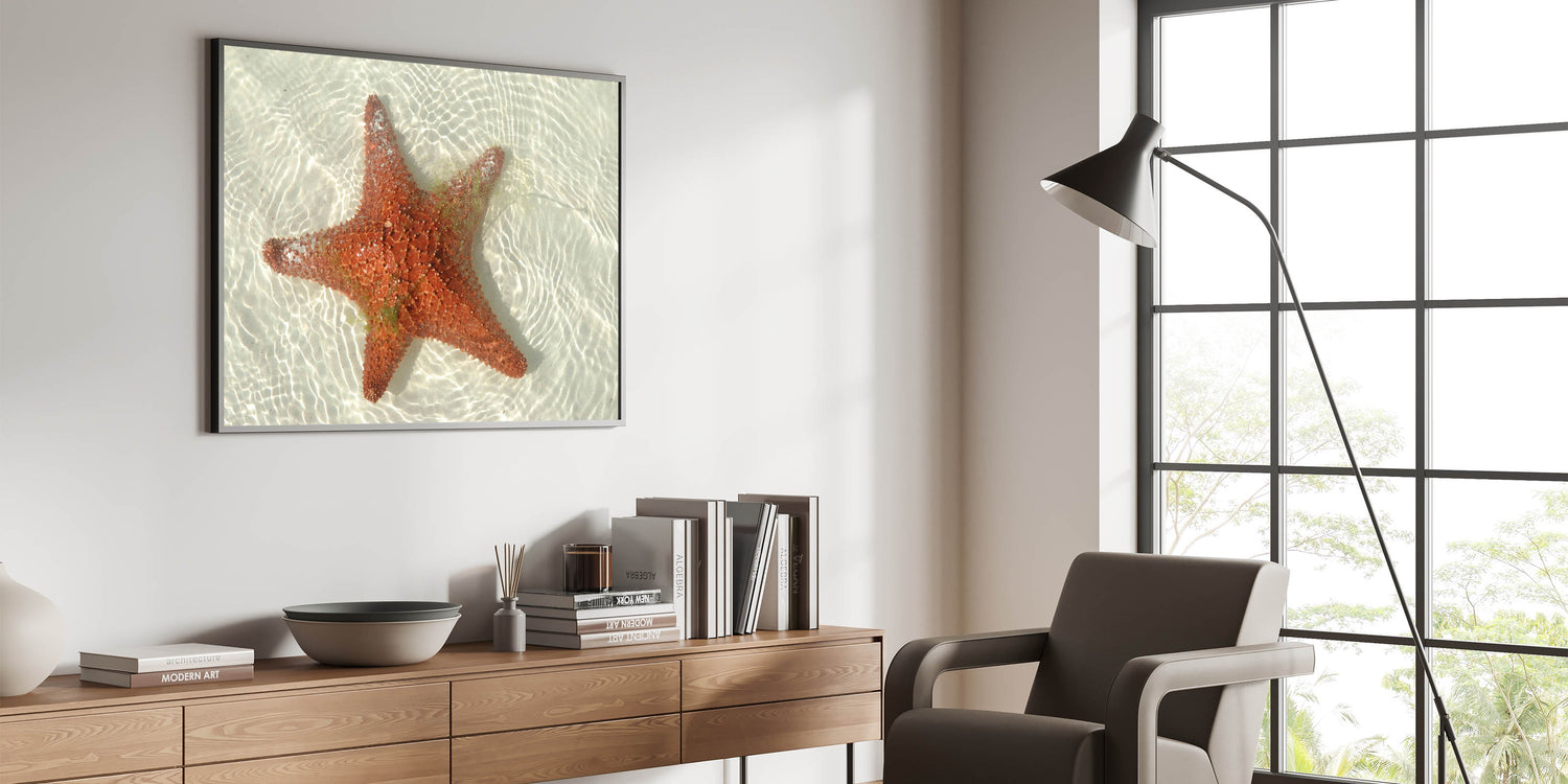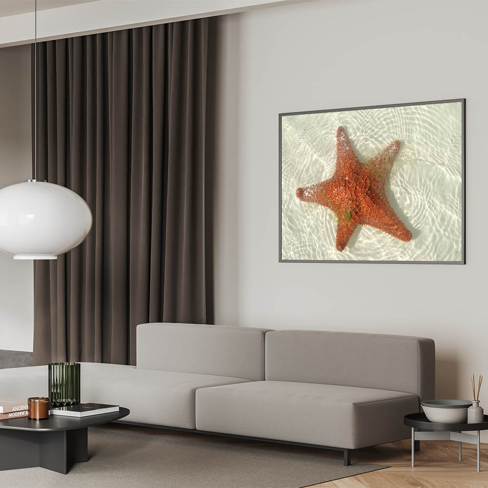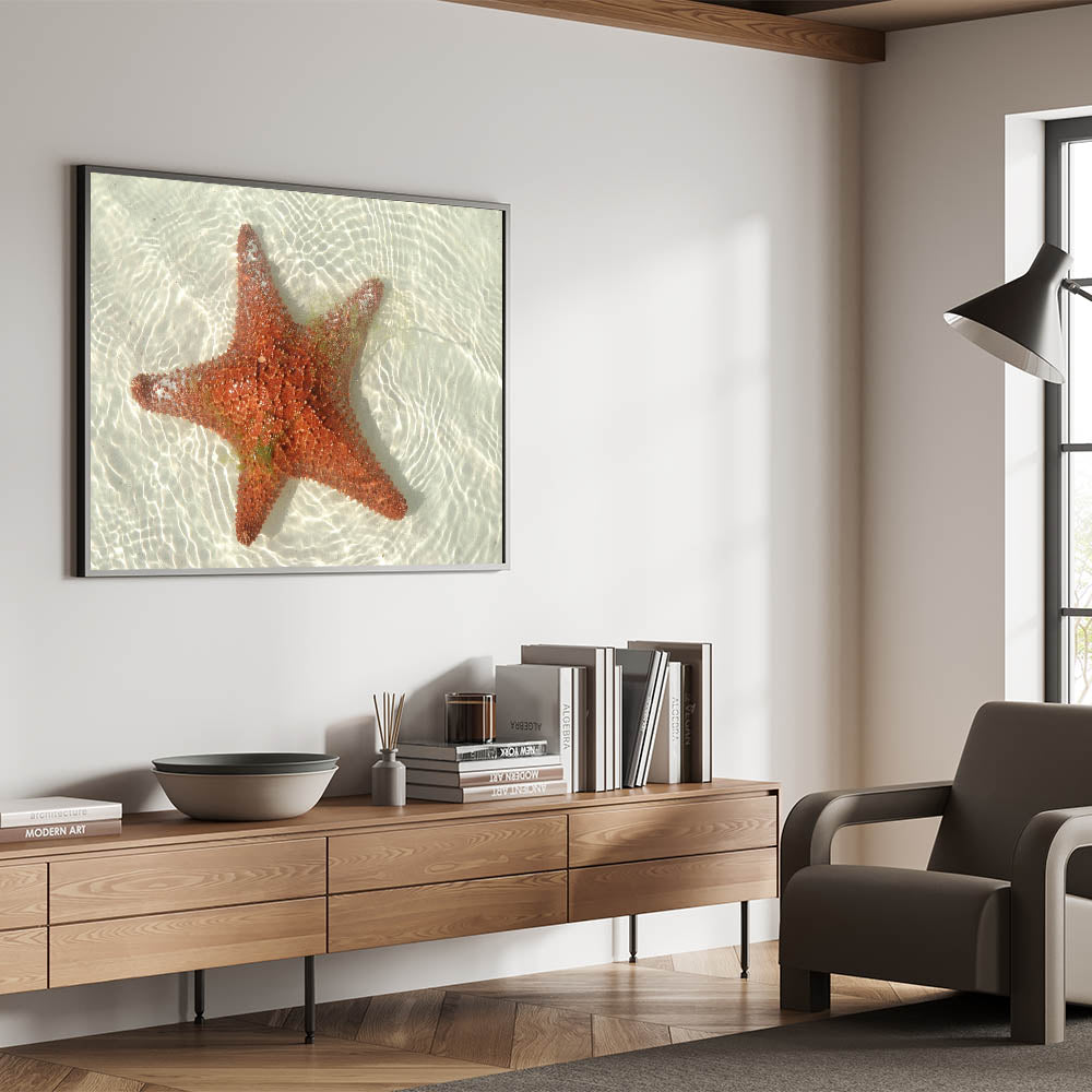 • Vivid coastal photography: Captures the vibrant red hues of the starfish against the crystal-clear waters of Tulum.