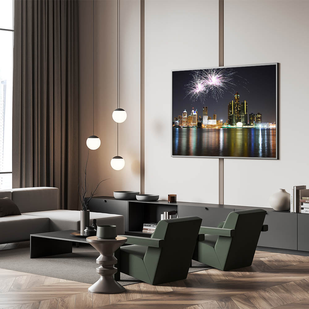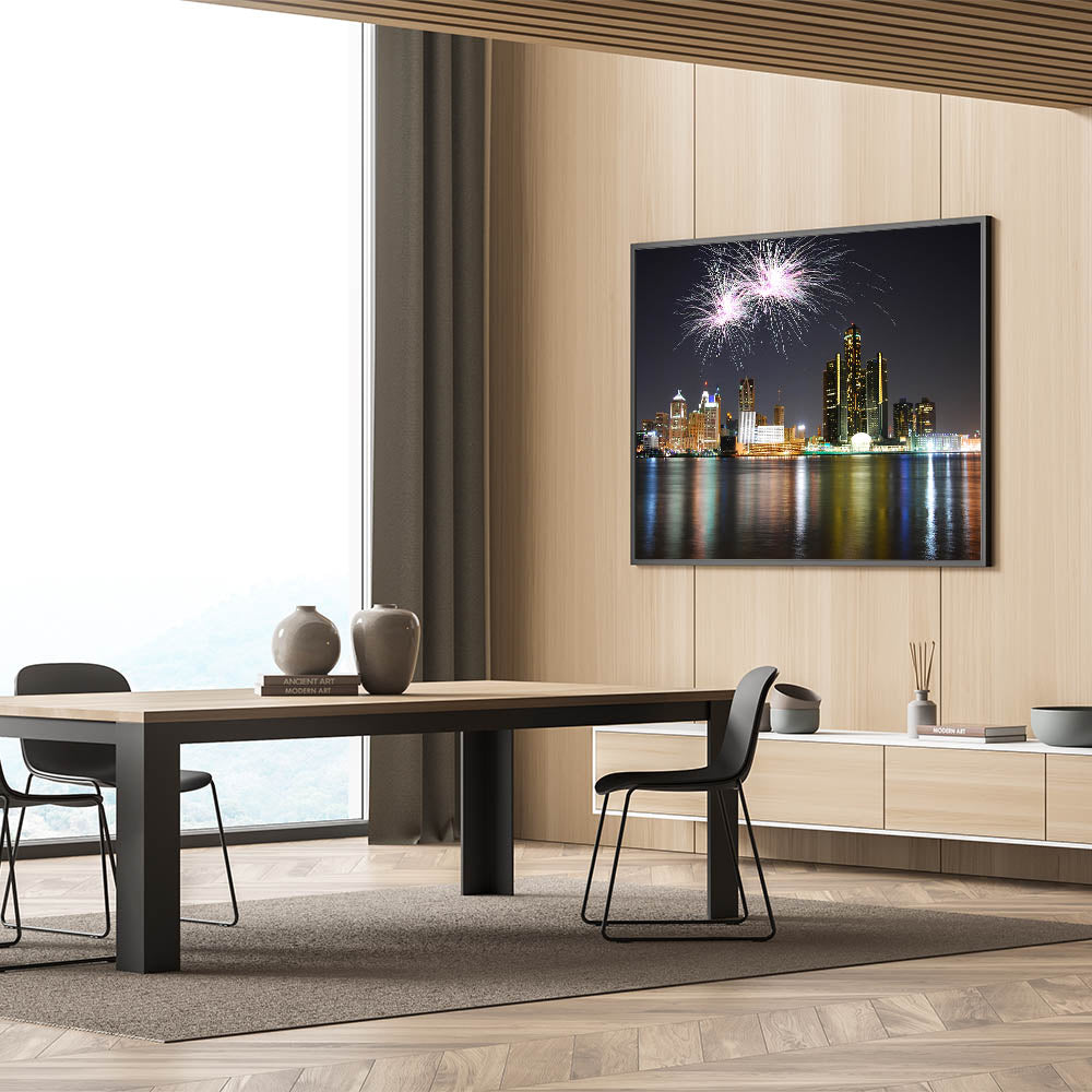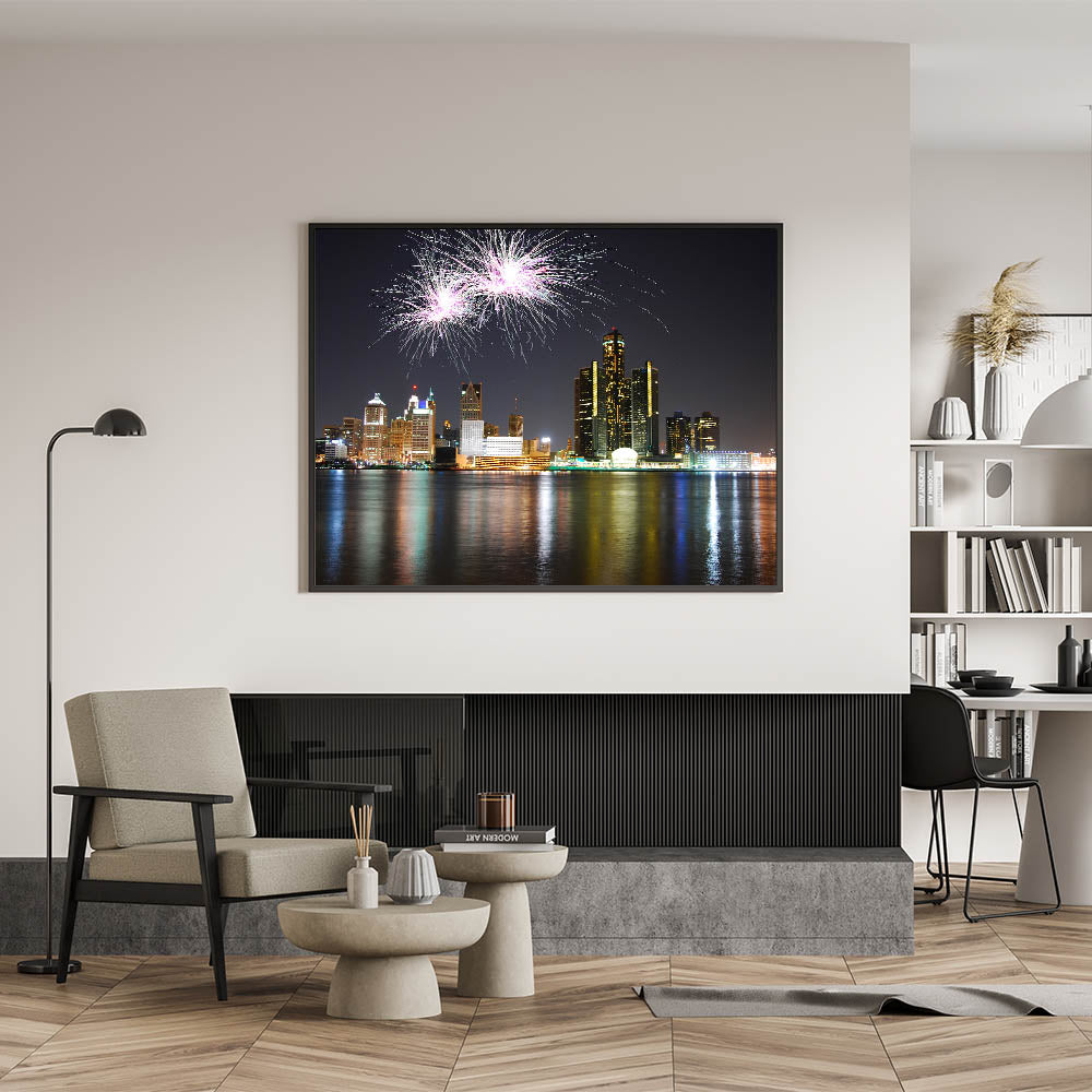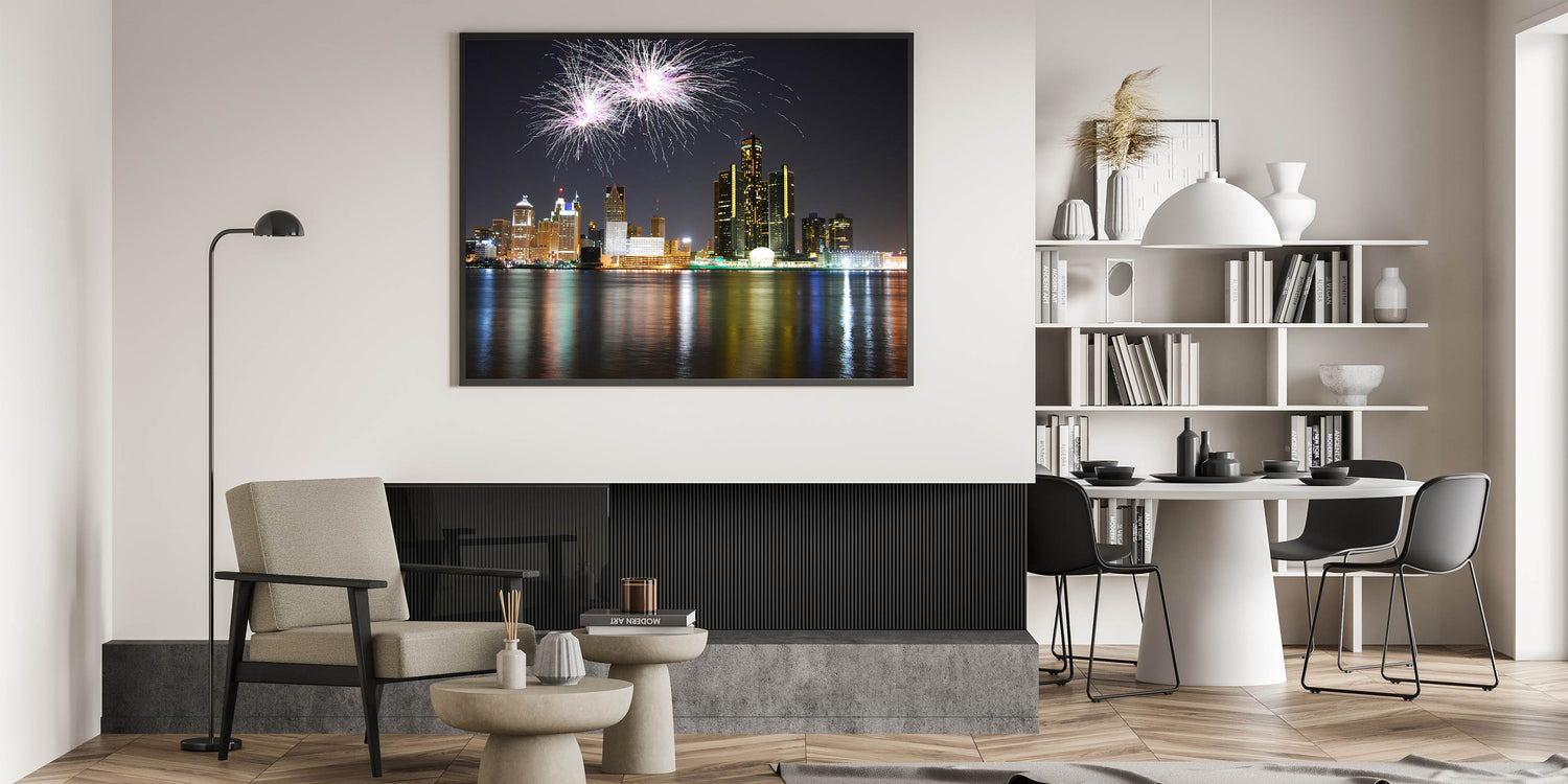 - Unique Detroit photography prints capturing the city’s fireworks and skyline in vivid detail.