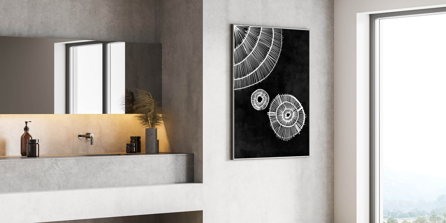 Elevate your space with this timeless geometric wall art. Its minimalist design and striking black and white contrast make it a perfect addition to any mid-century modern decor.