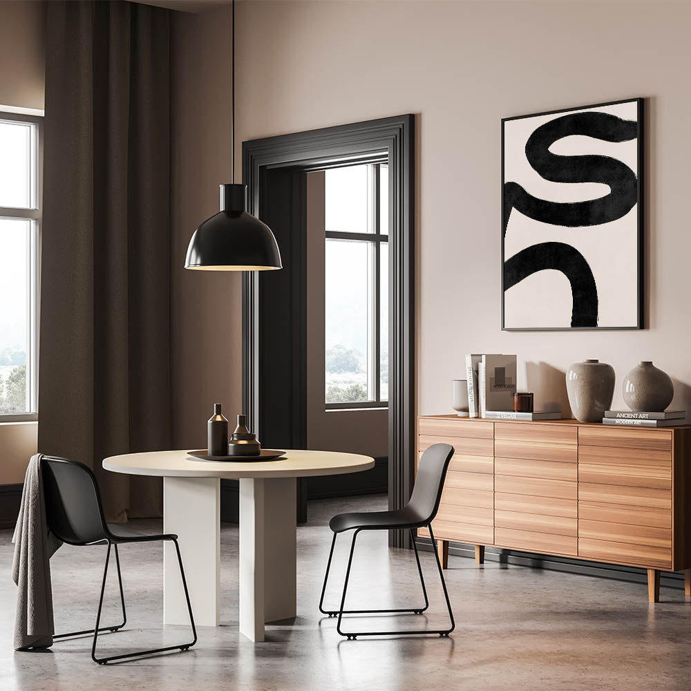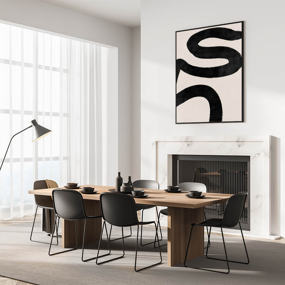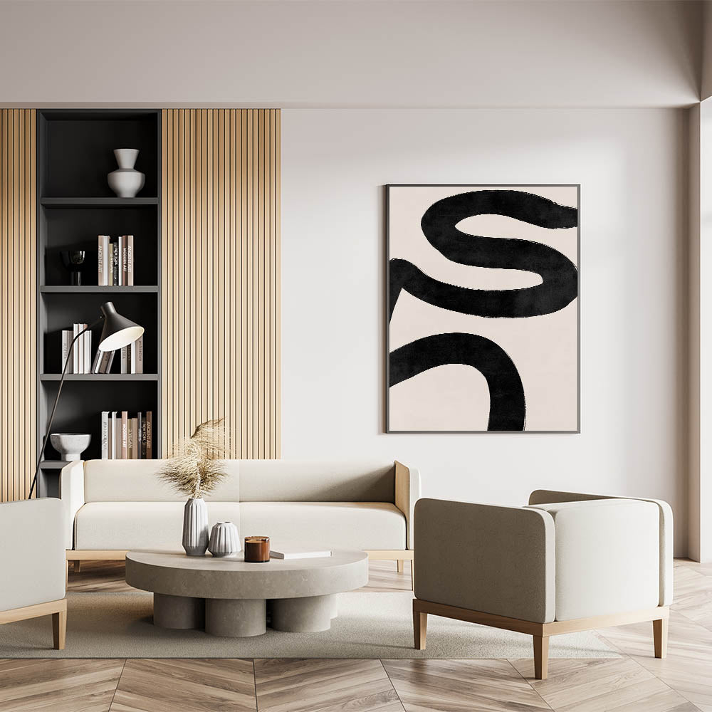 This retro-inspired design adds a bold yet sophisticated focal point to any room. The sleek black lines create a sense of flow and movement, making this piece both visually engaging and easy to integrate into various decor styles.