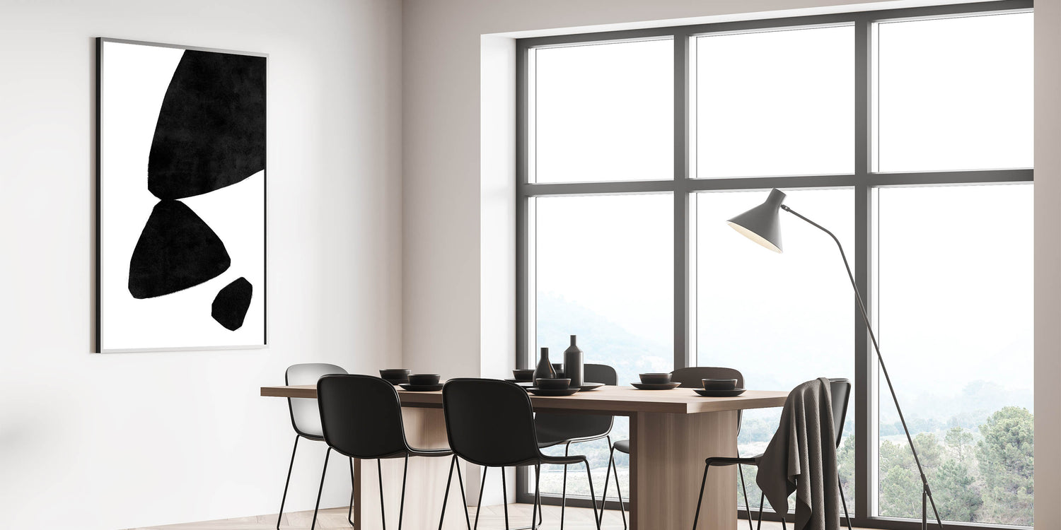 - Bold black and white art, ideal for contemporary and retro-inspired spaces
