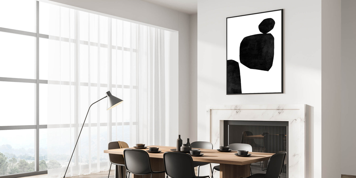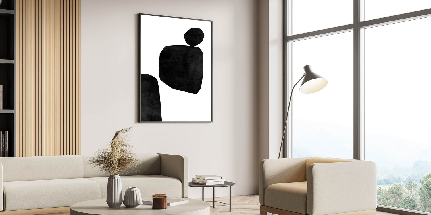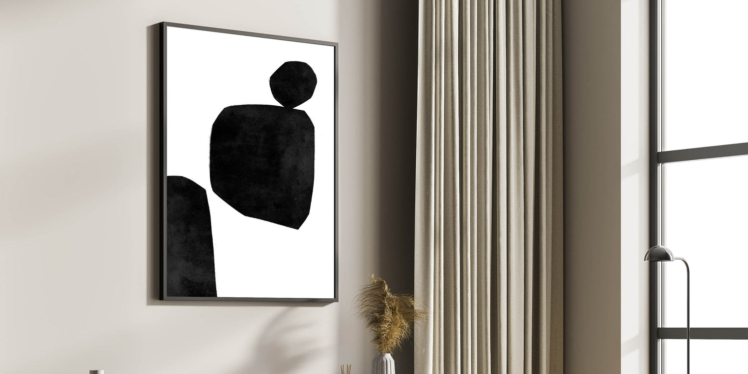 - Bold black and white art, perfect for contemporary and retro-inspired interiors