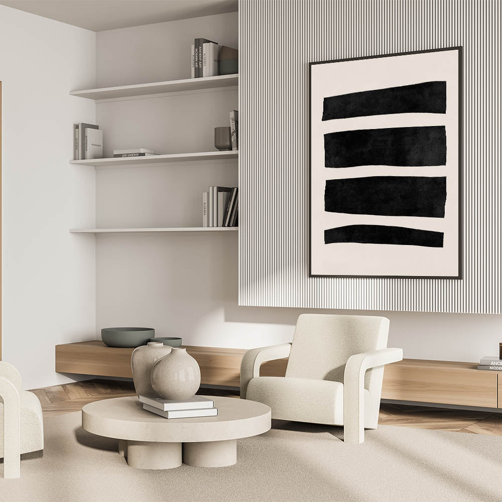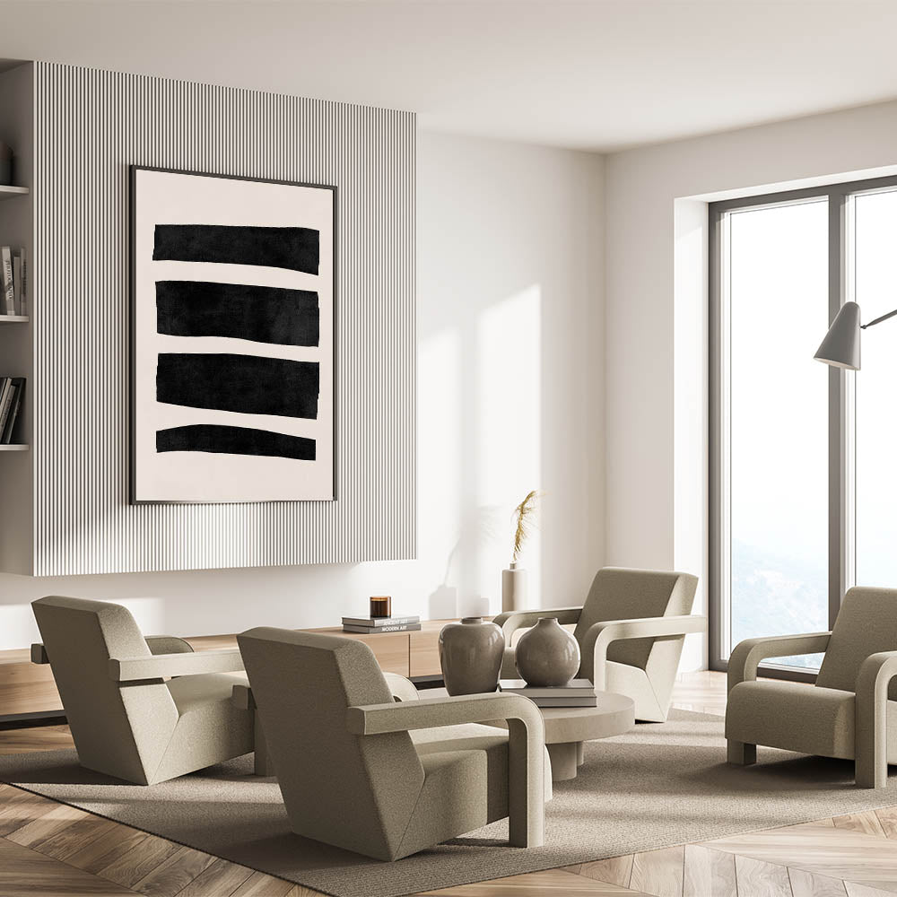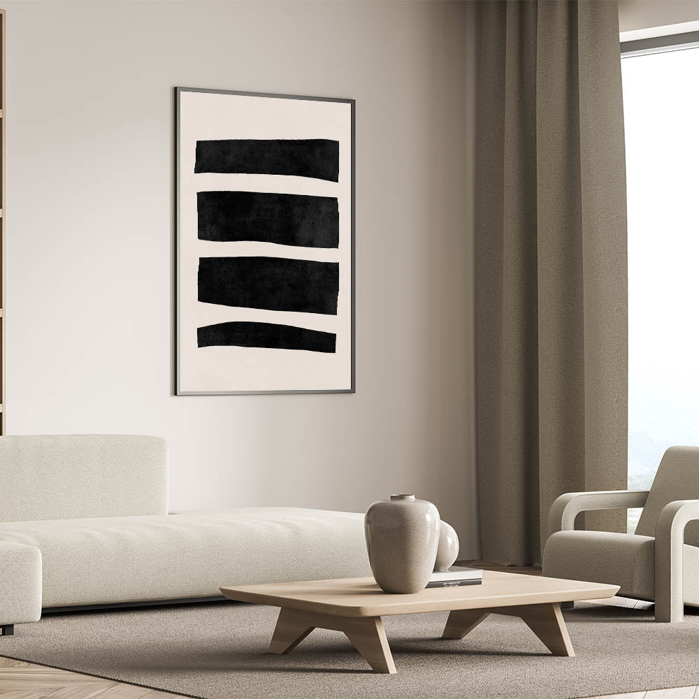 Elevate your living space with this striking Mid Century Modern Art piece. Featuring bold black geometric stripes, this minimalist design brings a sleek, retro-inspired touch to any room. Perfect for those who appreciate retro abstract prints and vintage modern style, this artwork makes a bold statement while maintaining simplicity and elegance. Its clean lines and balanced composition make it versatile enough to fit in various interior styles, from mid-century modern decor to contemporary minimalism.