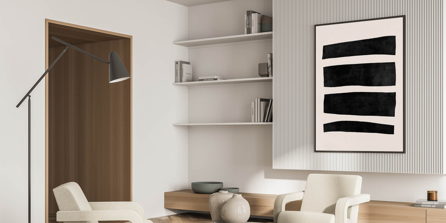Mid Century Modern Art | Minimalist Geometric Stripe Wall Decor