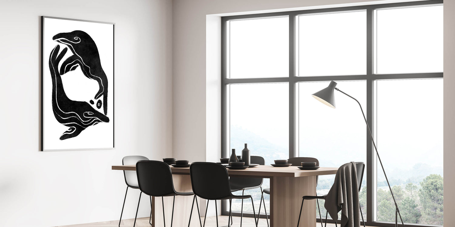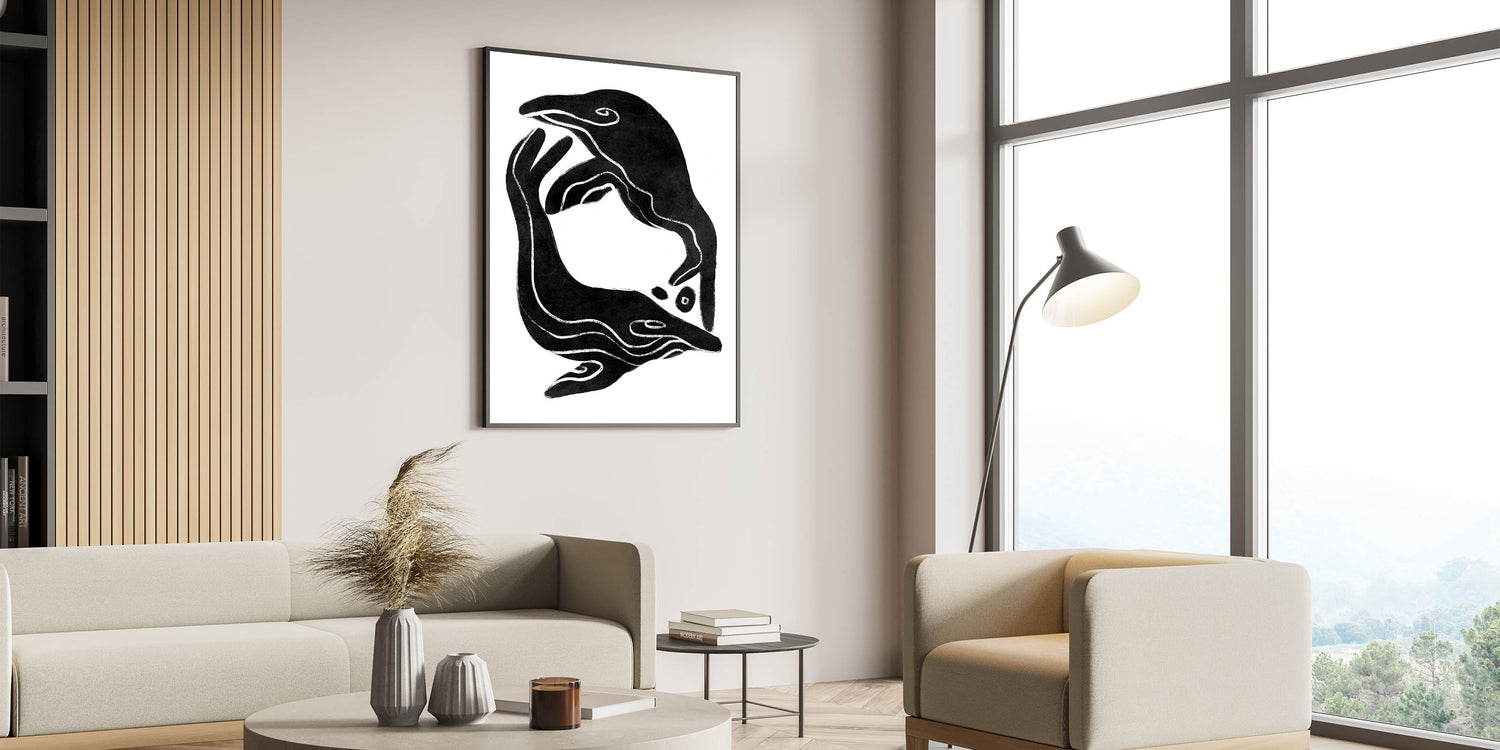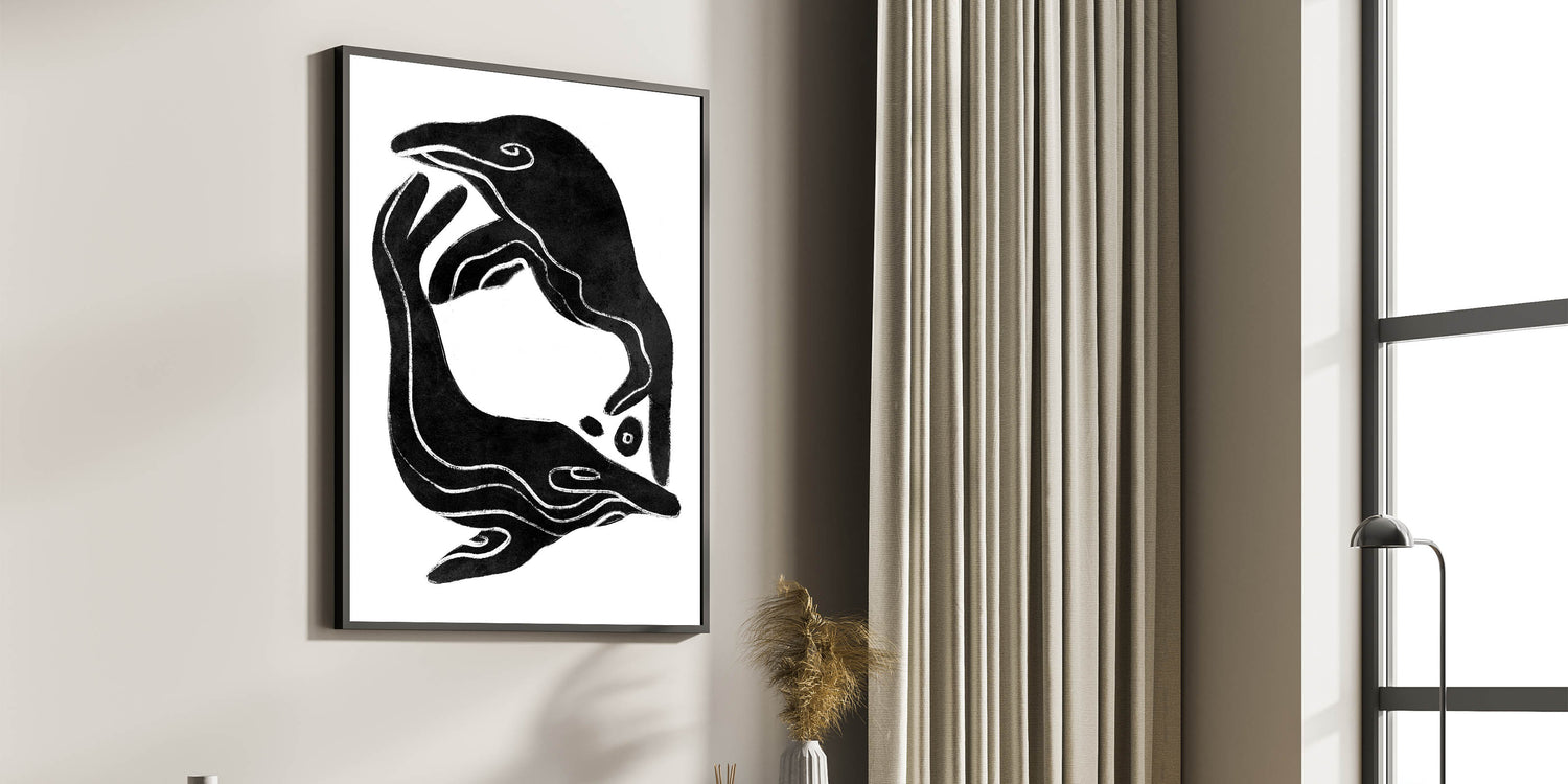 • Minimalist black and white art, perfect for retro or modern spaces