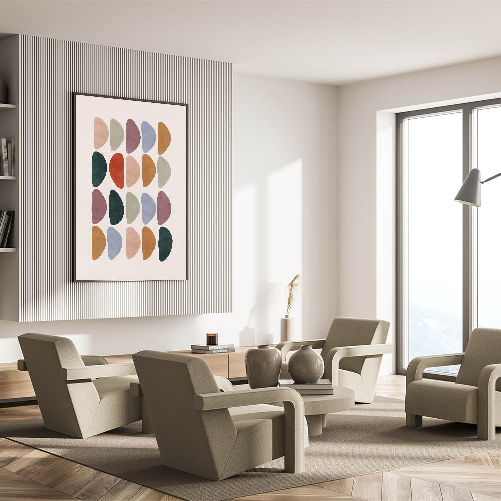 Transform your living space with this unique piece of art, perfect for enhancing any modern minimalist aesthetic or mid-century modern decor. Bring a timeless appeal with retro influences to your home with this vintage-inspired geometric print.