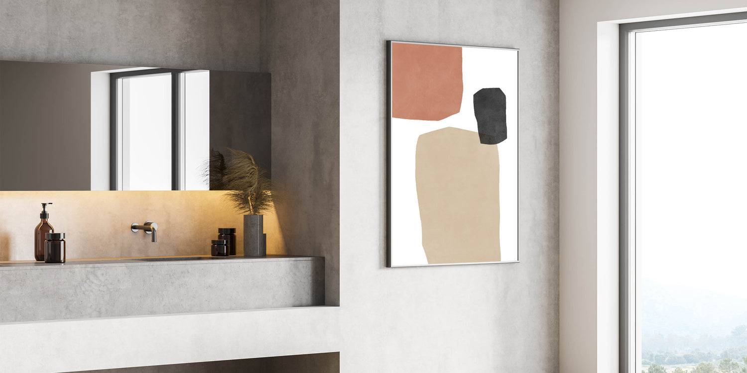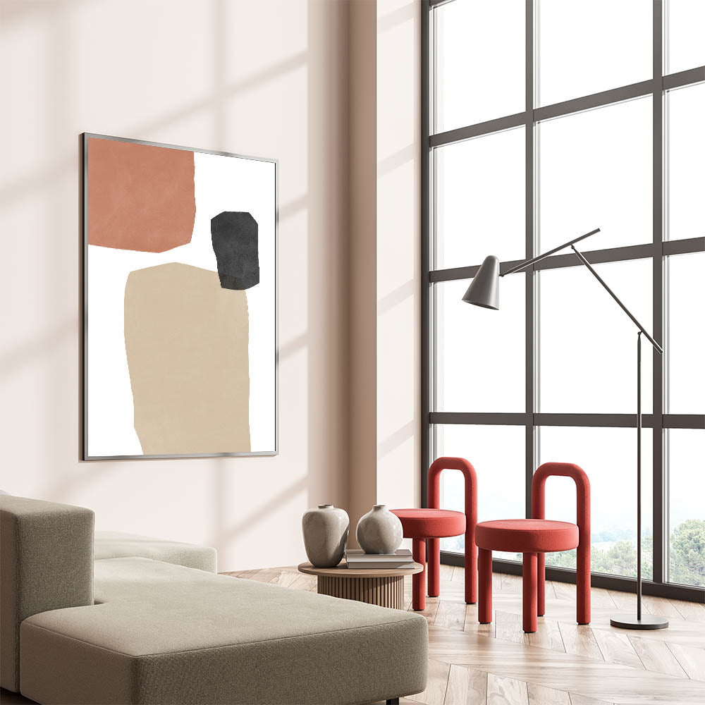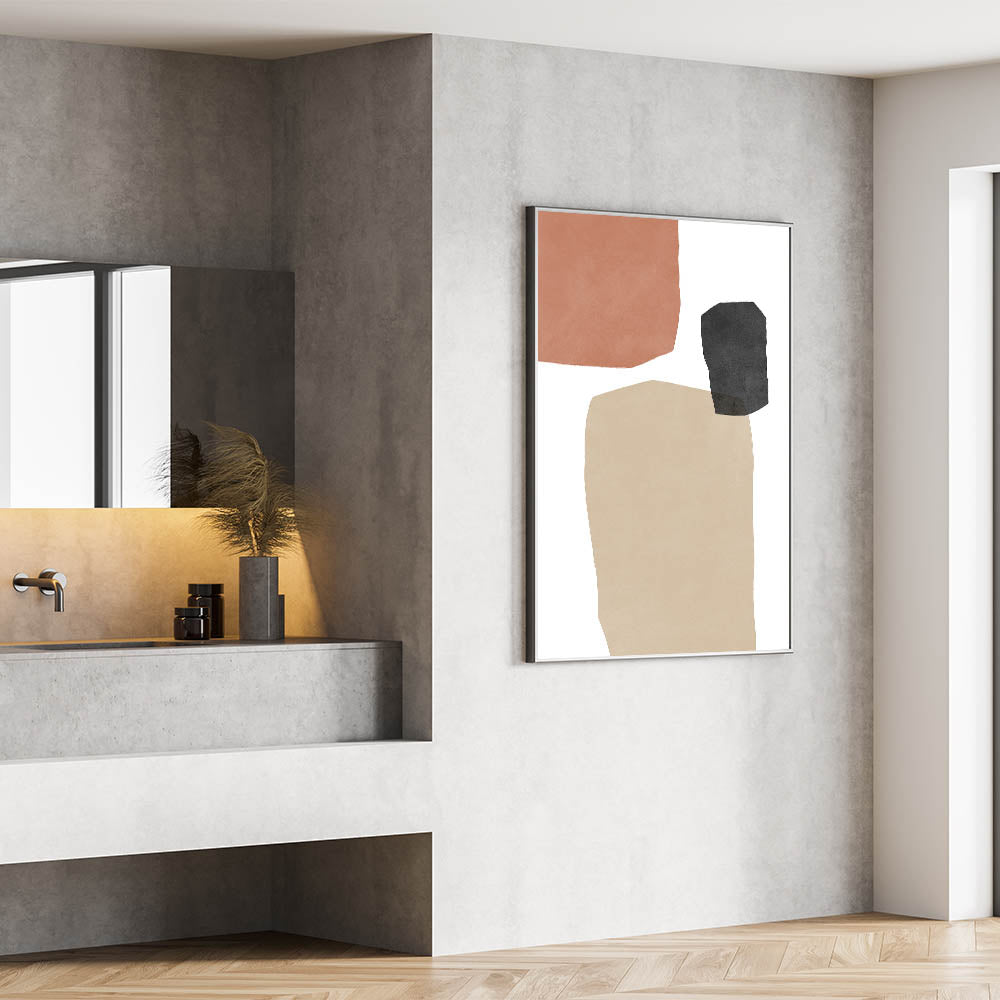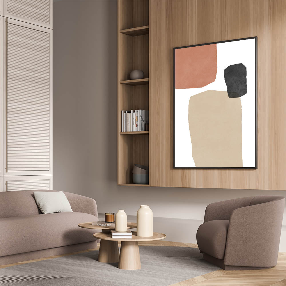Elevate your home decor with this striking Mid Century Modern wall art, featuring retro-inspired abstract geometric patterns. The combination of soft terracotta, charcoal, and beige tones brings a timeless yet minimalist aesthetic, making it a perfect piece for any modern or vintage-inspired space. This artwork blends simplicity with an artistic flair, ideal for creating a calming, sophisticated atmosphere in your living room, bedroom, or office.