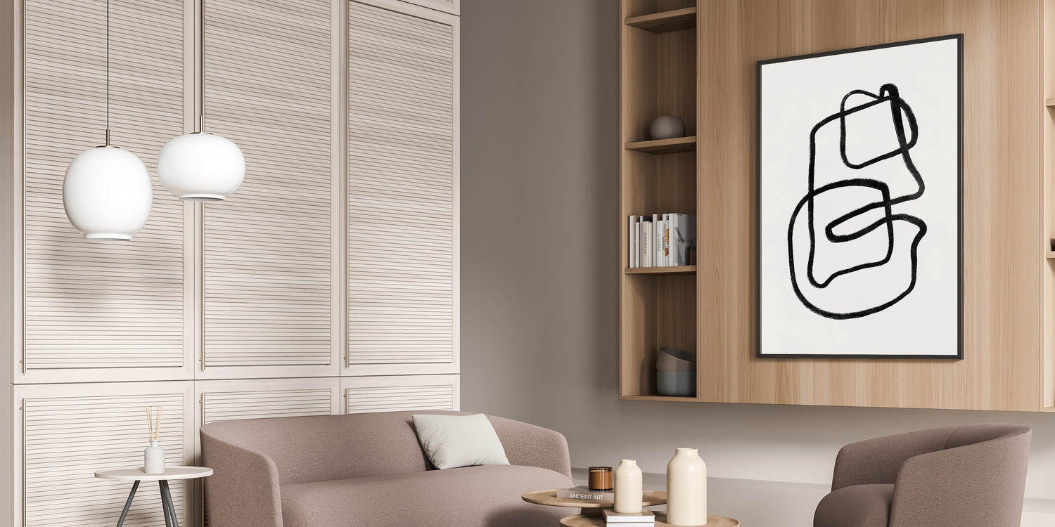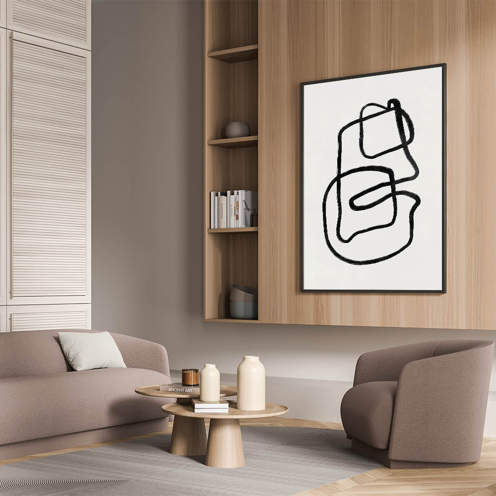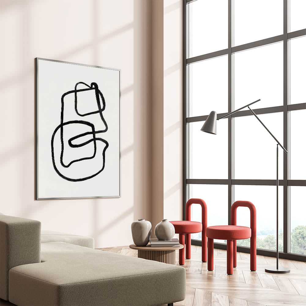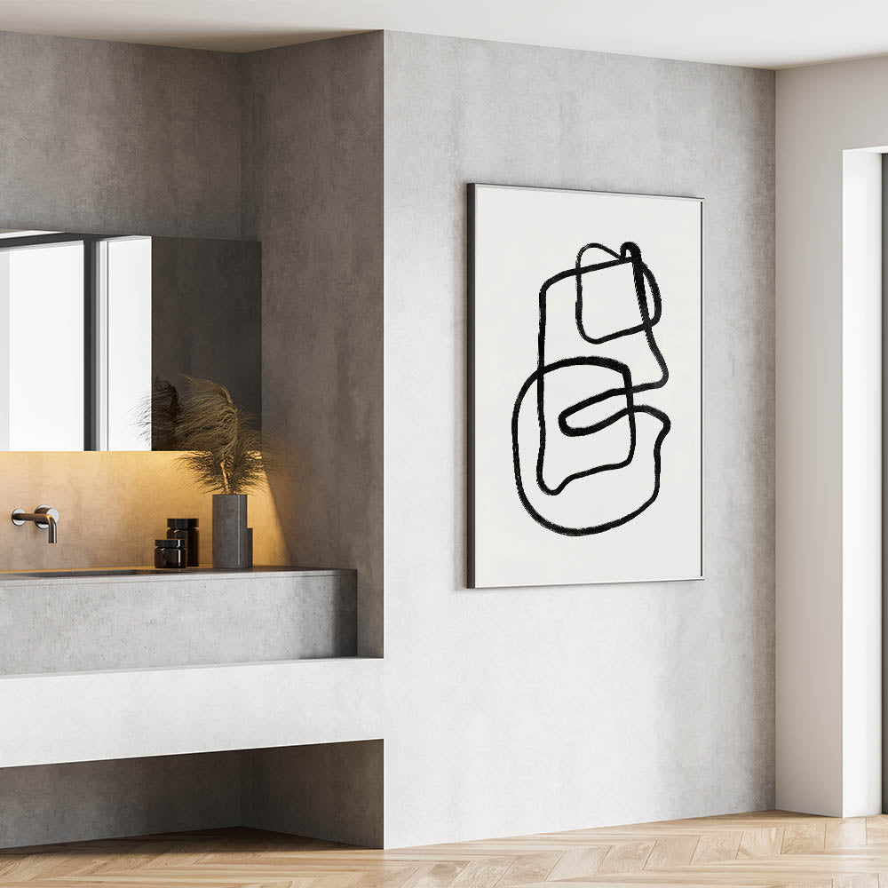 Add a modern, artistic element to your home with this captivating Mid Century Modern Art piece. Featuring dynamic black linework, this abstract artwork brings a sense of movement and minimalism to your space. Ideal for fans of retro abstract prints and those who love clean, simple designs, this piece is perfect for both contemporary and vintage modern style interiors.