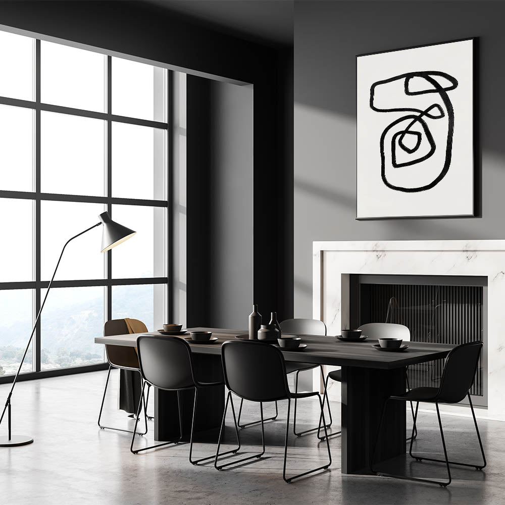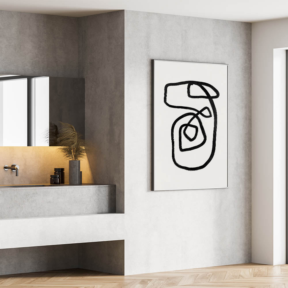 Refresh your space with this captivating Mid Century Modern Art piece, featuring a bold geometric line pattern that brings a sense of fluidity and minimalism. Perfect for lovers of retro abstract prints and those who appreciate a clean, simple design, this artwork offers a timeless aesthetic that fits seamlessly into any modern or vintage modern style interior. The black linework contrasts beautifully against the neutral background, creating a dynamic focal point in your home.