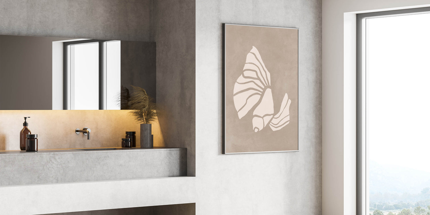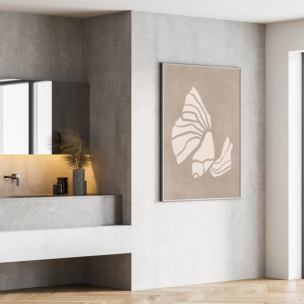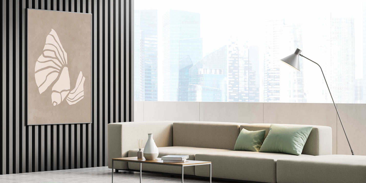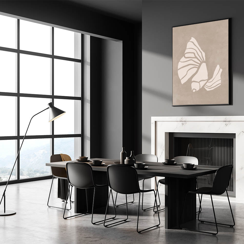 Mid Century Modern Art - Retro Minimalist Shell Design in Beige Tones