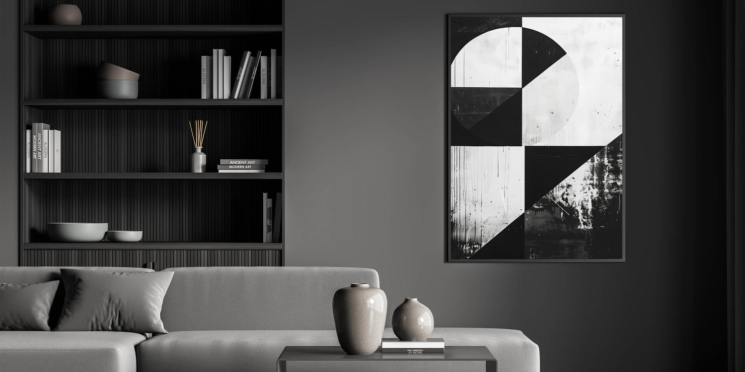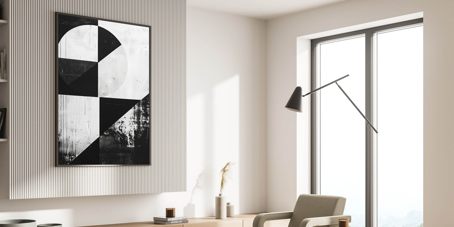 Mid Century Modern Black and White Art - Minimalist Geometric Decor