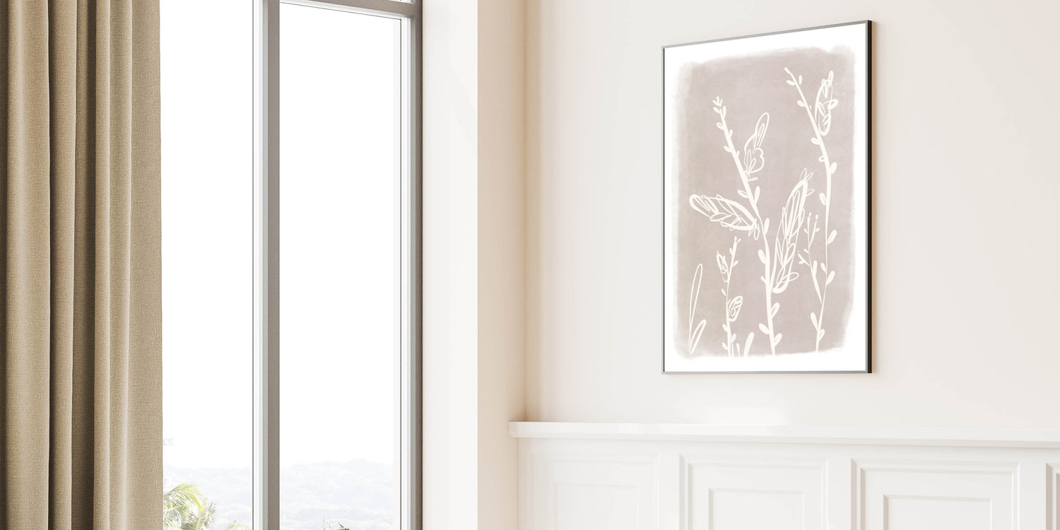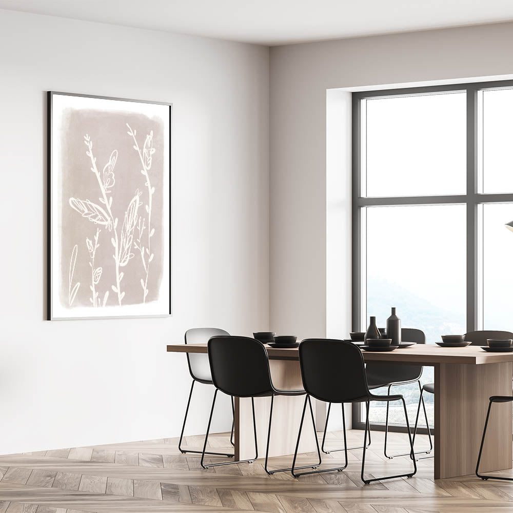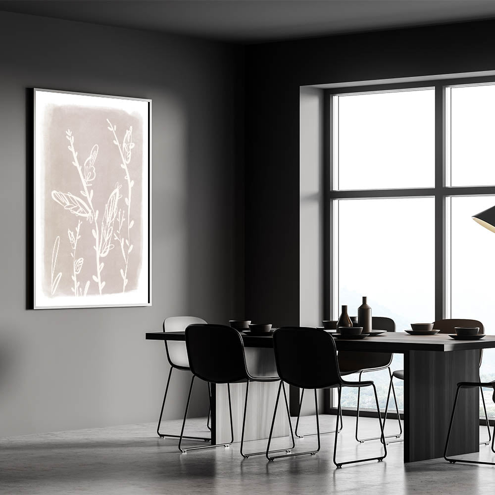 Bring a touch of nature and vintage charm to your home with this Mid Century Modern Art piece, featuring elegant floral linework against a muted geometric backdrop. This design is perfect for adding a sense of minimalist wall art to your space while maintaining a retro-inspired look. The delicate white floral outlines on a soft neutral background create a peaceful yet stylish aesthetic, making this artwork ideal for a variety of decor styles.