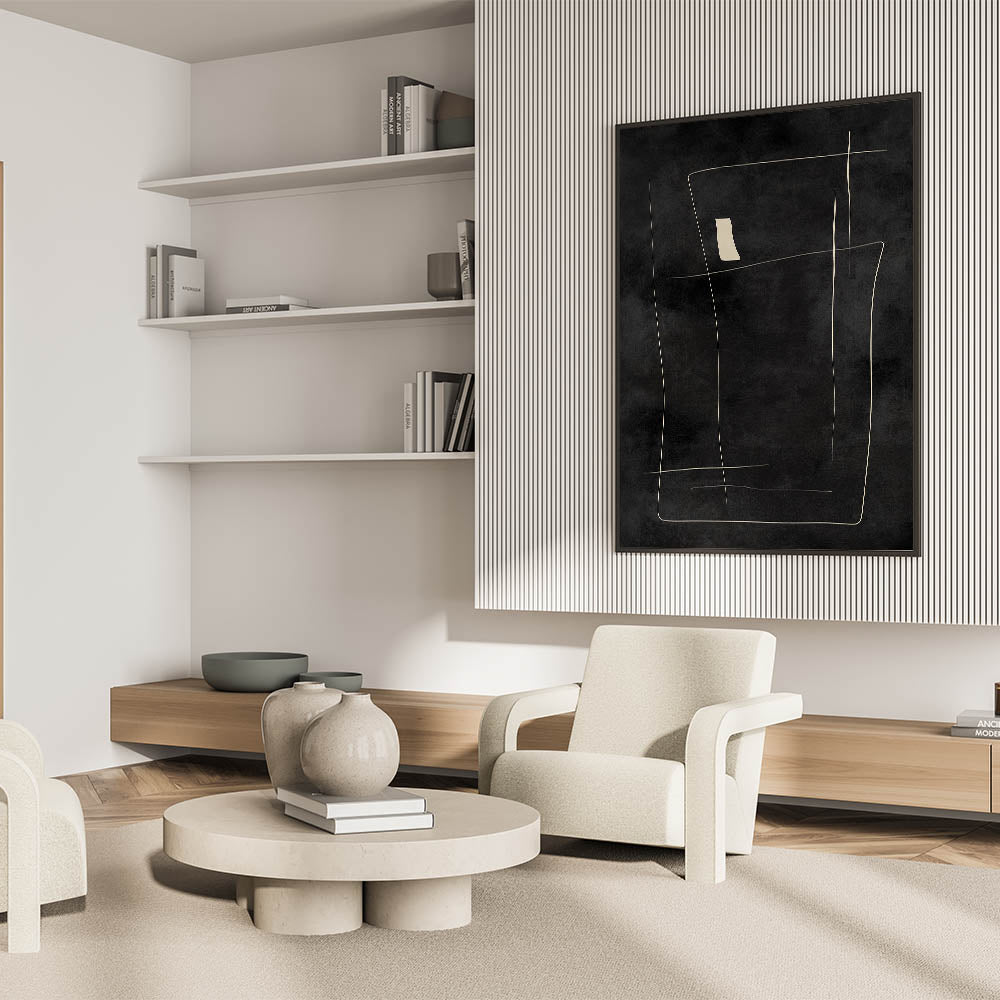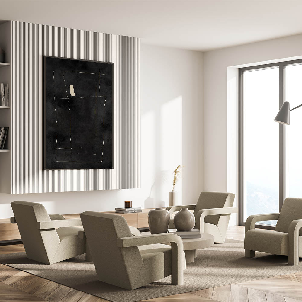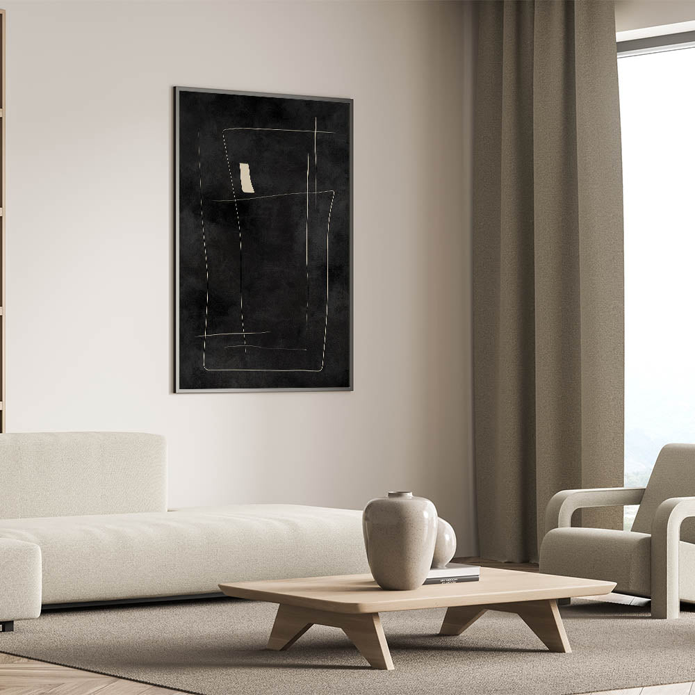 • Minimalist line art against a dark backdrop, perfect for modern, minimalist, or retro interiors.