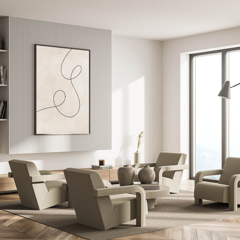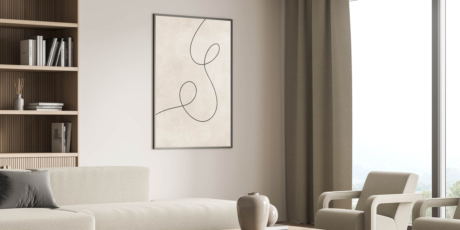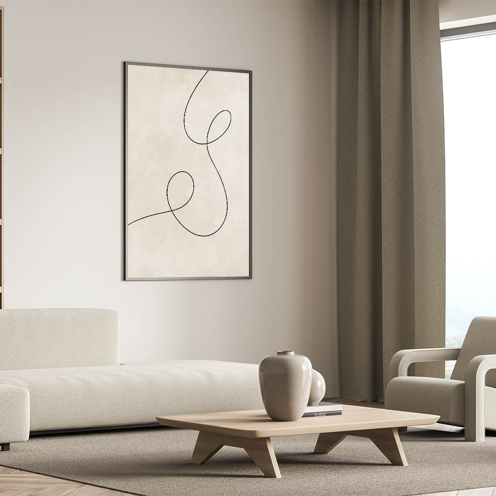 Introduce simplicity and elegance into your home with this Mid Century Modern Art piece, designed with a focus on minimalism. The single black line, looping gracefully against a soft background, exemplifies retro abstract design while maintaining a modern, understated aesthetic. Perfect for those who appreciate the beauty of geometric wall decor, this artwork is both timeless and versatile, making it an excellent choice for various interior settings.