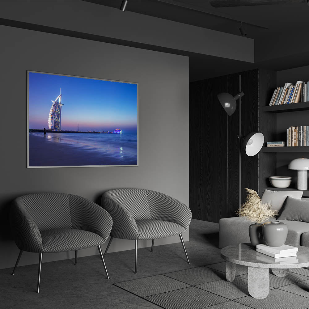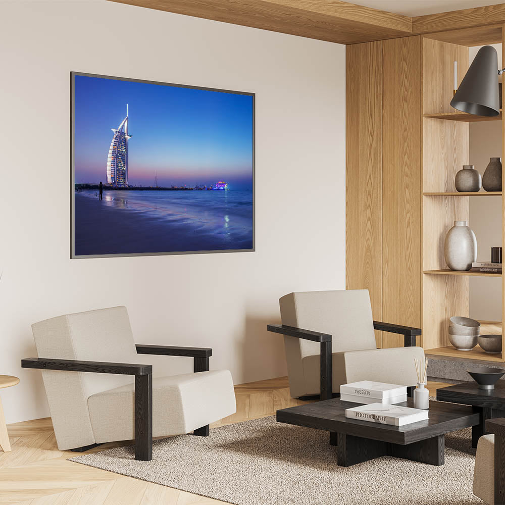 Bring the beauty of Dubai’s skyline and the elegance of the Burj Al Arab into your home with this stunning Dubai wall art. Perfectly capturing the serene waters and the iconic architecture, this high-quality Dubai wall art is the ideal piece for those who appreciate luxury and elegance in their décor. Whether you are looking for Burj Al Arab wall decor or stunning Dubai skyline photography, this artwork will transform any space.